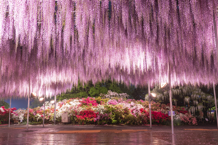 - [Attraction/experience] 18:00, 1 hour(s) 30 min(s), Self-guided, Ashikaga Flower Park, Ashikaga Flower Park - Wisteria Flower Festival (Entrance fee not included, must be paid separately). Enjoy the beauty of wisteria flowers of various colors in layers from a 350-year-old great wisteria tree! *The best viewing period is around mid-April to early May.