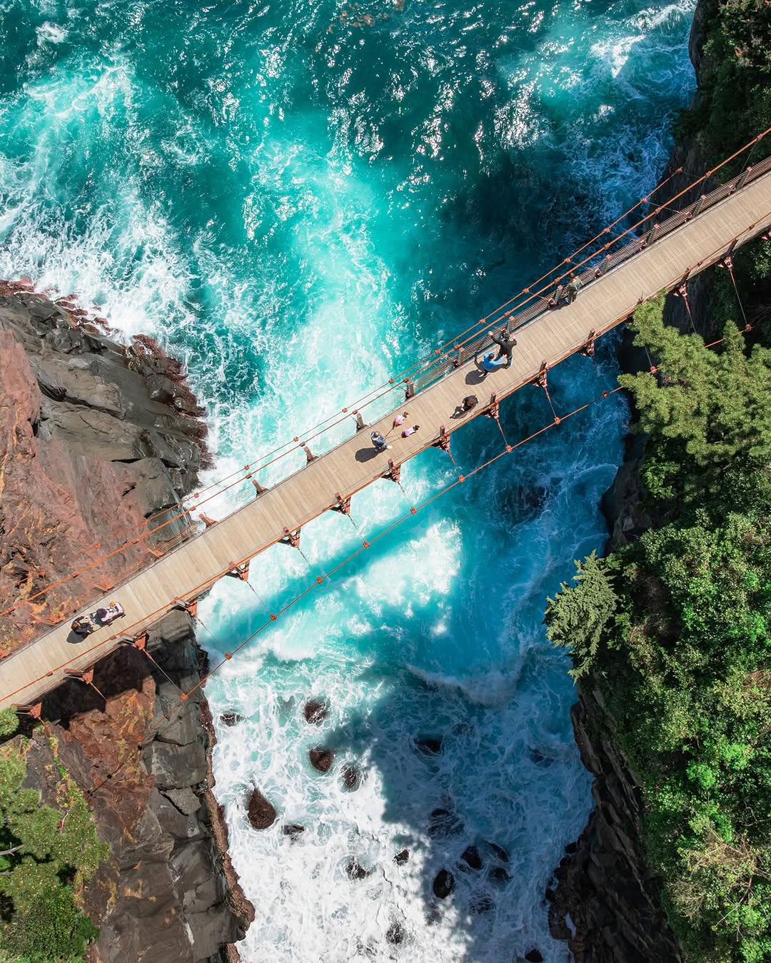 - [Attraction/experience] 40 min(s), Self-guided, Jōgasaki - Kaigan Station, Kadowaki Suspension Bridge, The lava flow from the eruption of Mount Omuro has been eroded by the sea over many years, forming this 9 km long lava coastline. The Jogasaki Coast boasts a magnificent coastline stretching 9 km, featuring the Kadowaki Suspension Bridge, where you can experience the thrill of standing on the sea.