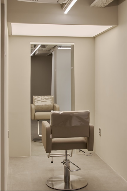 - Stretching(3') → Brushing(3') → Scaling/Acupressure(10') → Hair Pack(10') → Steamer(5') → Shampoo(10') → O2-Jet(10') → AMTS & Ampoule(10') → Plasma(10') → Regeneration Laser(6') → Toning(5') → Self-Dry