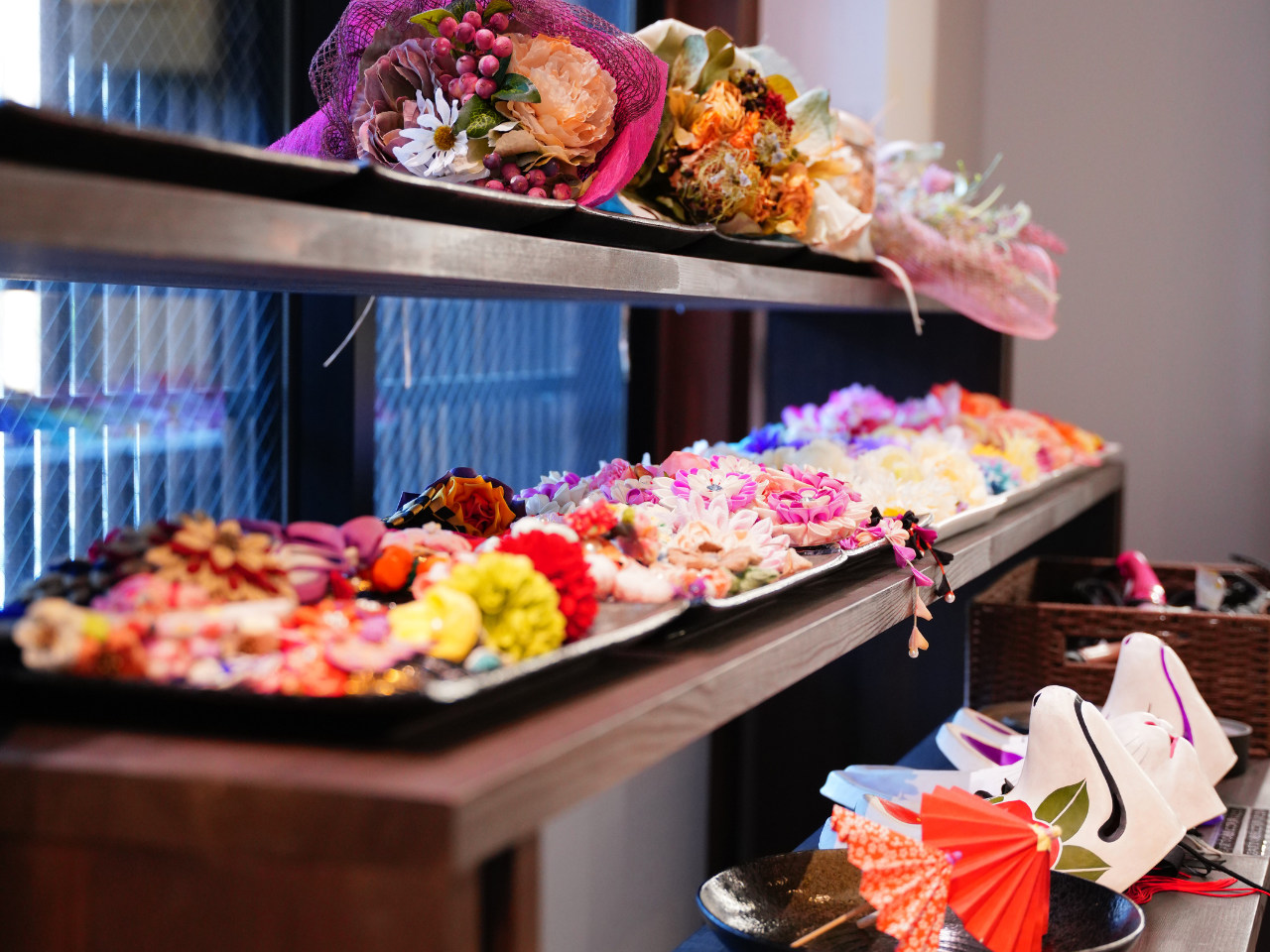 - [For Customers Doing Self Hair Styling]We provide a free space equipped with makeup items, hair accessories, and hair irons for self-styling. Five free dressers are available, so groups can enjoy at their own pace.
