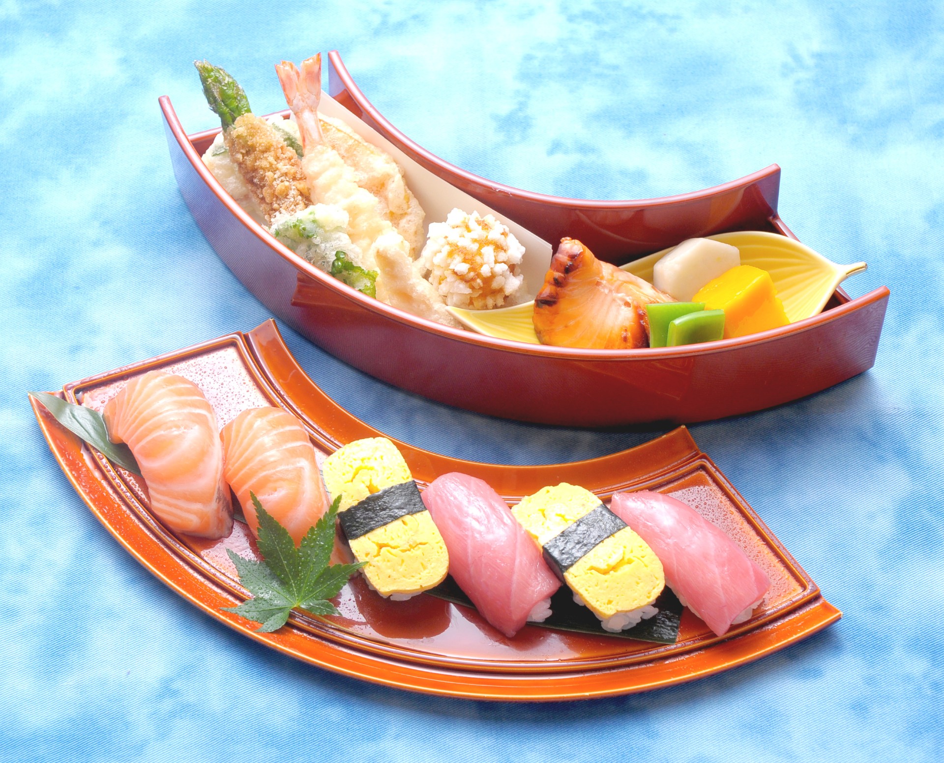 - Nigirizushi, Tempura, Grilled Fish, and other dishes, with a Soft Drink and Dessert included