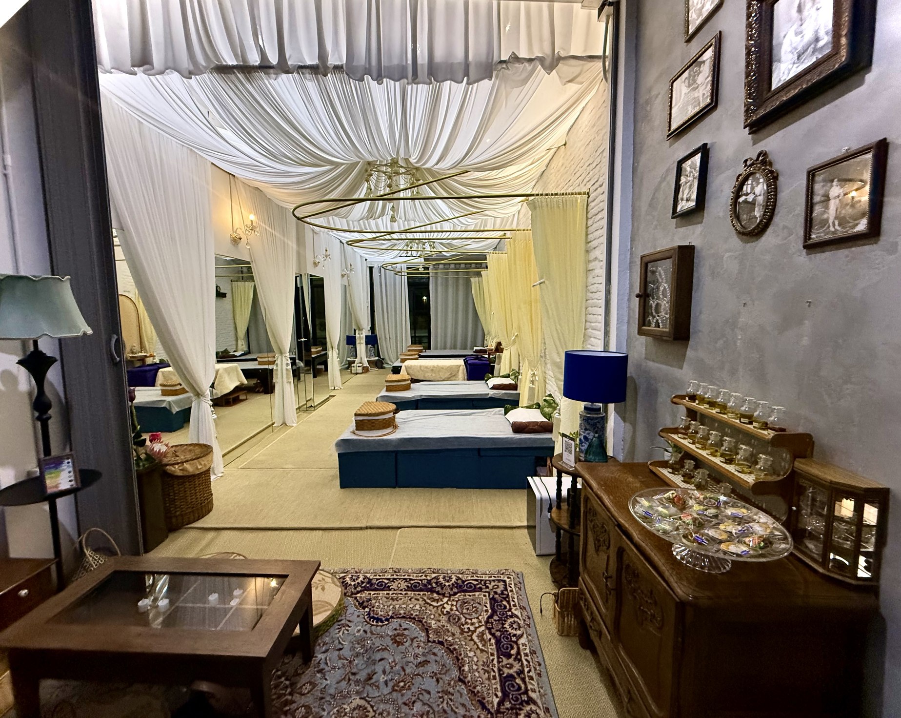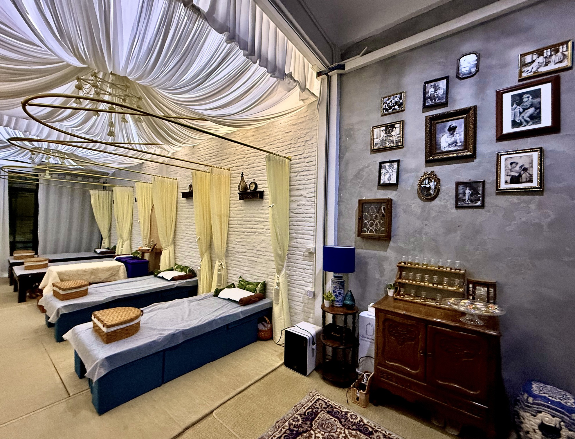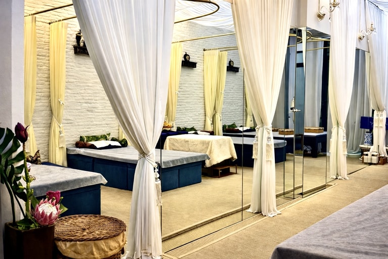 - 120-minute 30 mins: Herbal Foot Soak with Neck and Shoulder Massage / 40 mins: Sound healing with a nature instrument / 50 mins: Scalp Massage with Signature Oil and Stimulate Blood Circulation