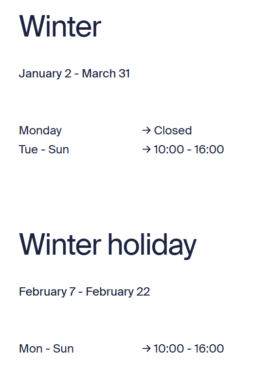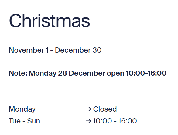 - Please refer to winter opening hours here