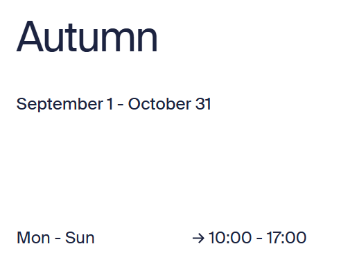 - Please refer to autumn opening hours here