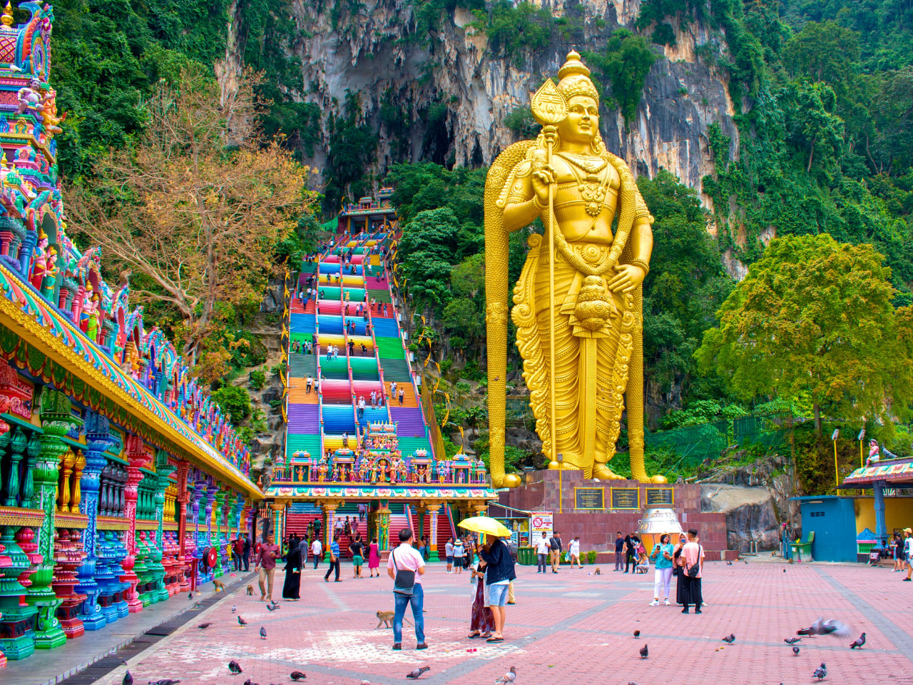 • [Attraction/experience] 1 hour(s) 30 min(s), Guided tour, Batu Caves, At the base of the staircase stands the towering golden statue of Lord Murugan, the deity to whom Batu Caves is dedicated. Climb the colourful steps into the limestone cave.