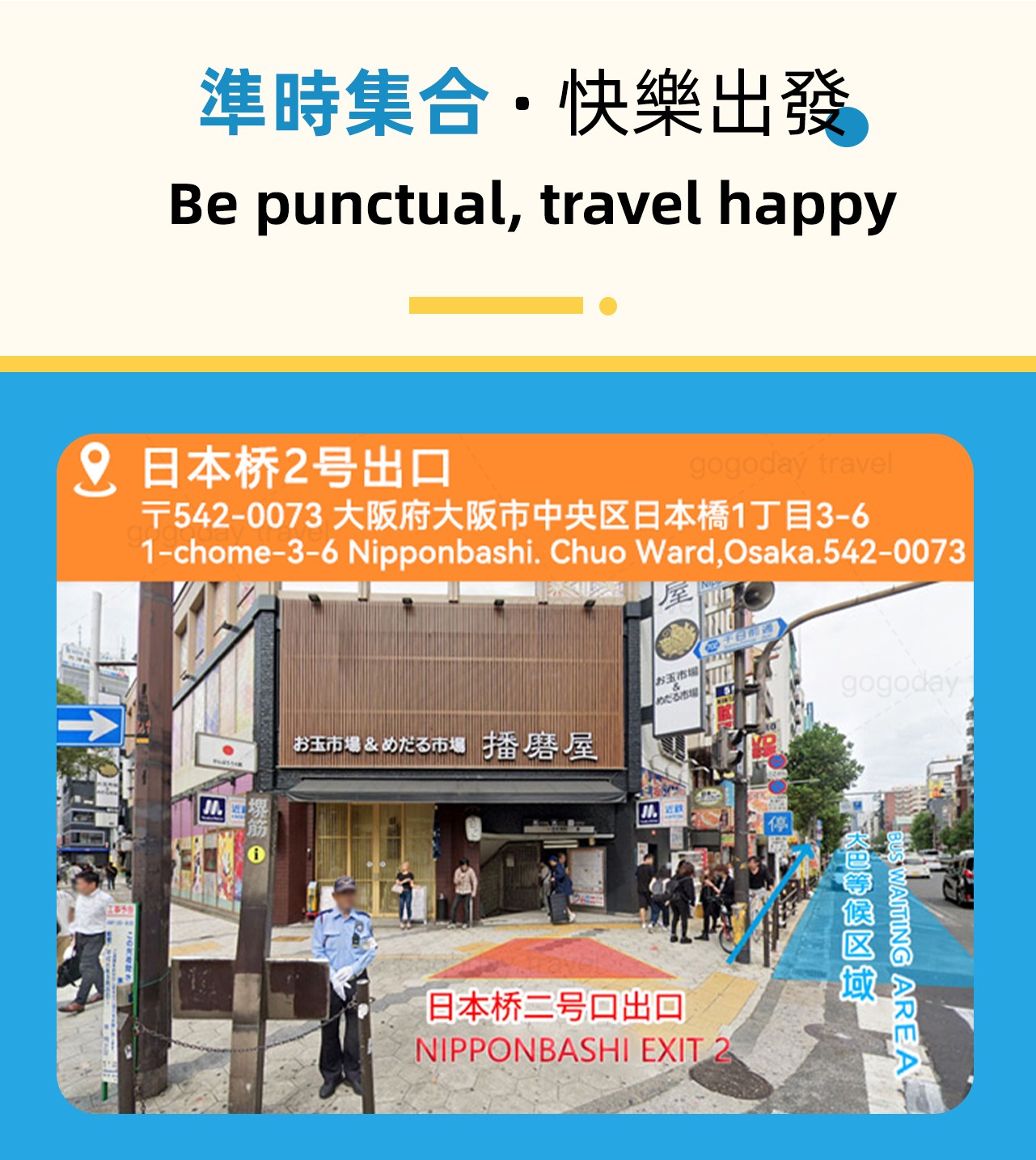 - Regarding the meeting point: Please be sure to confirm the meeting point before departure. Once the meeting point is confirmed, please do not change it at the last minute. If you are unable to board the bus due to a change of meeting point for personal reasons, a refund will not be possible.