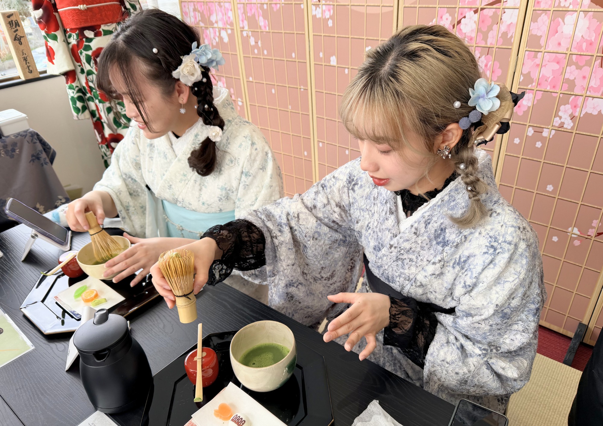 Tea Ceremony Experience+Kimono Rental (Outdoor Stroll OK / Women's Hairstyling)