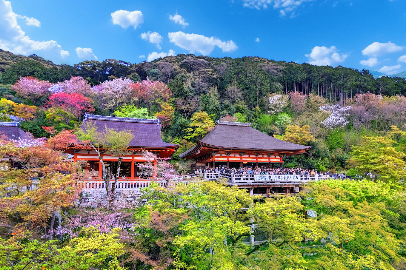 - [Attraction/experience] 1 hour(s) 30 min(s), Self-guided, Kiyomizudera Temple, The Stage of Kiyomizu, Ninenzaka, Kiyomizu-dera Temple is one of the oldest wooden buildings in Japan and is also listed as a World Heritage Site. Cherry blossoms in spring and red leaves in autumn attract countless tourists. Climb Kiyomizu Stage to overlook the cityscape of Kyoto. Stroll through the old-fashioned streets of Ninen-zaka and Sannen-zaka in Kyoto, while tasting various local snacks.
