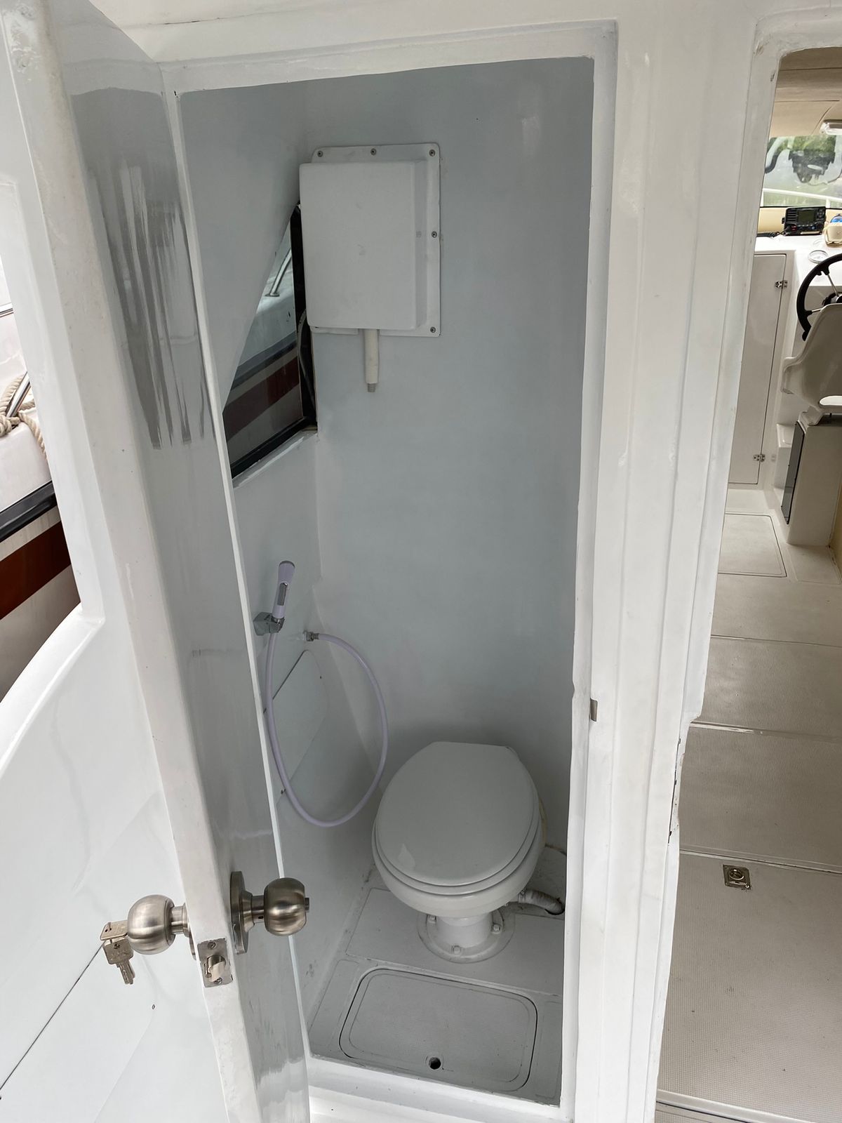 - Toilet inside the speedboat