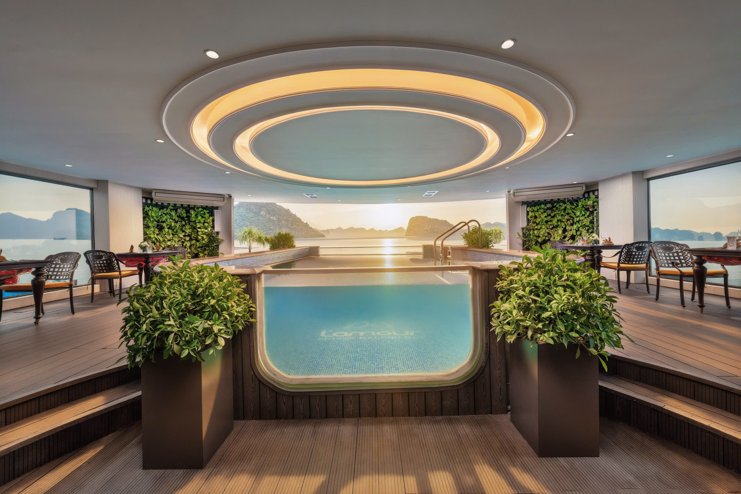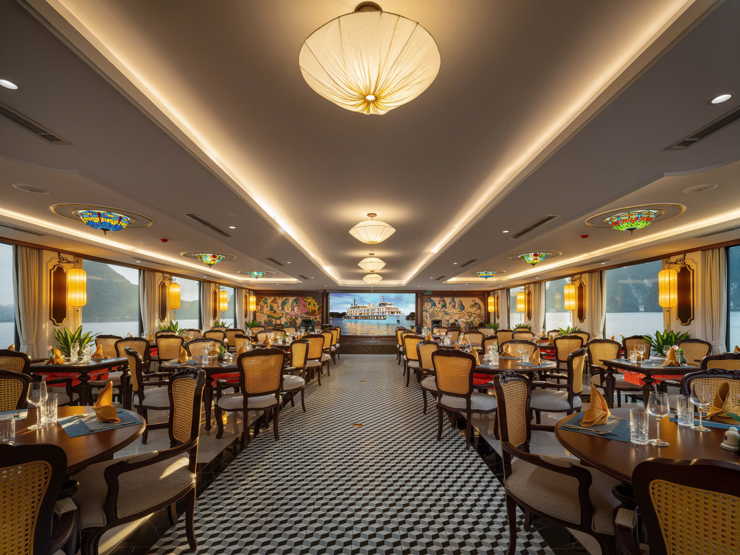 - [Dining] Dinner, Savour a delicious dinner at Thang Long restaurant (on sundeck). Enjoy “Vietnamese traditional musical instruments” show. Free to join the relaxing activities: squid fishing, pool, spas,...