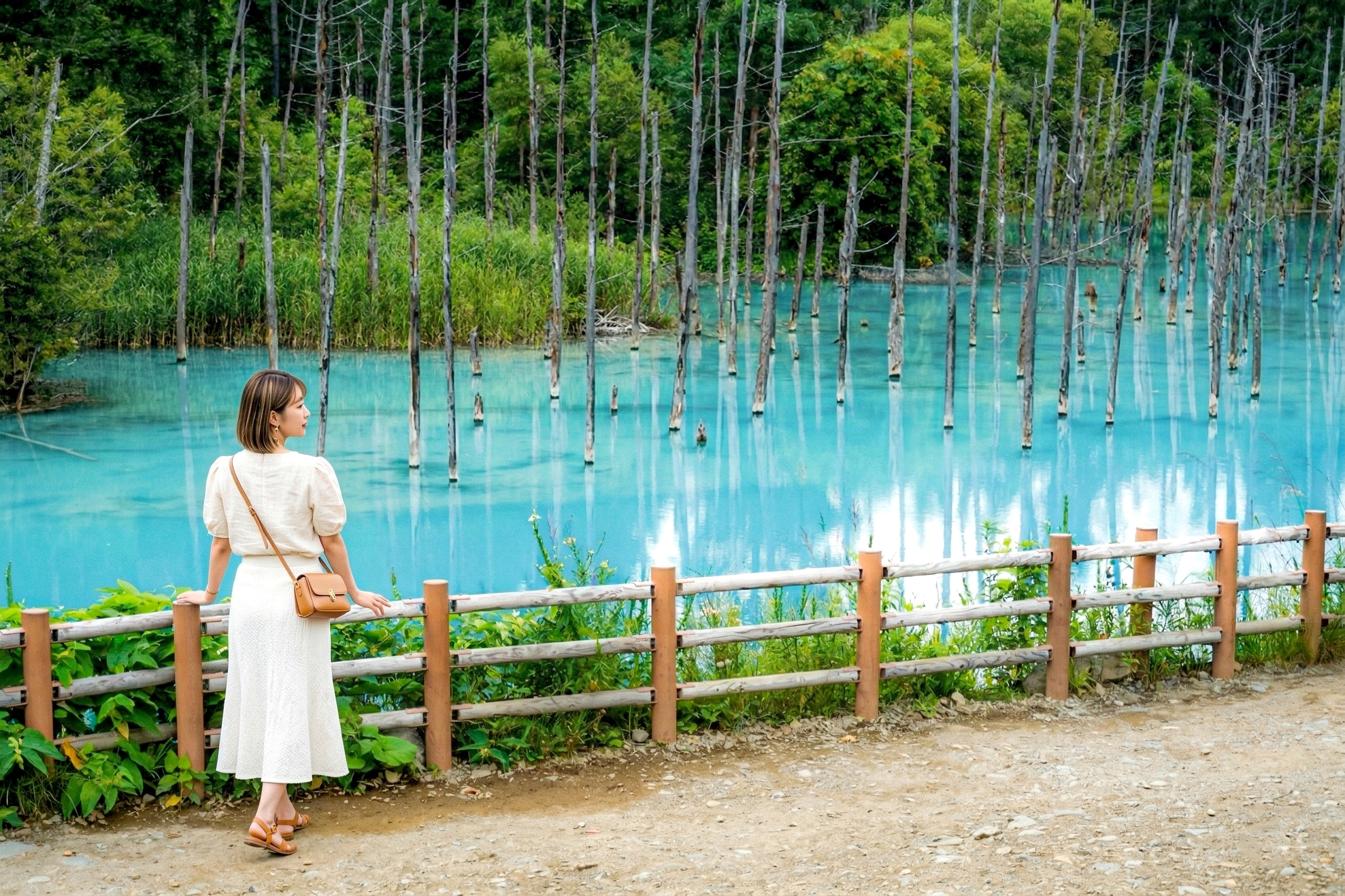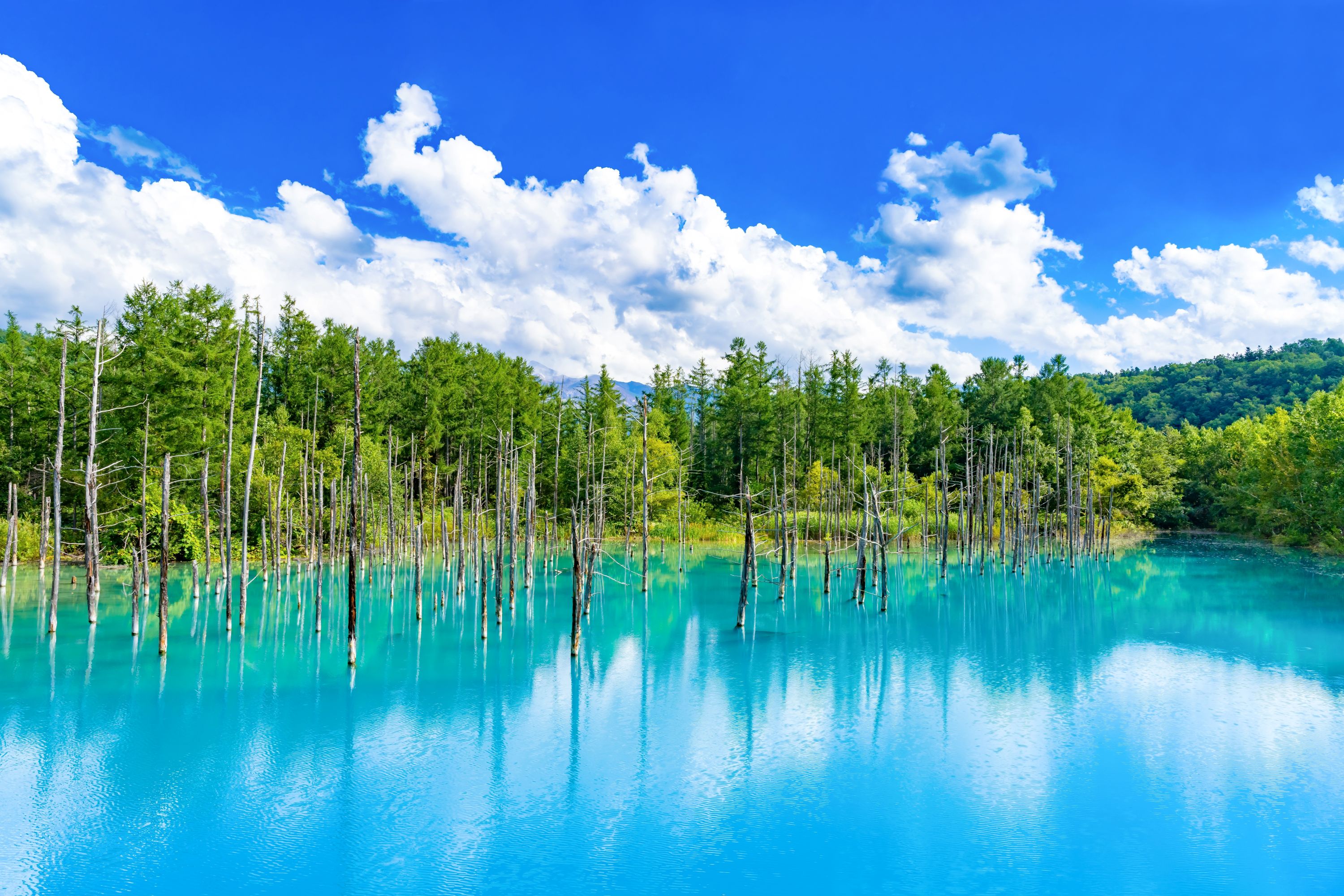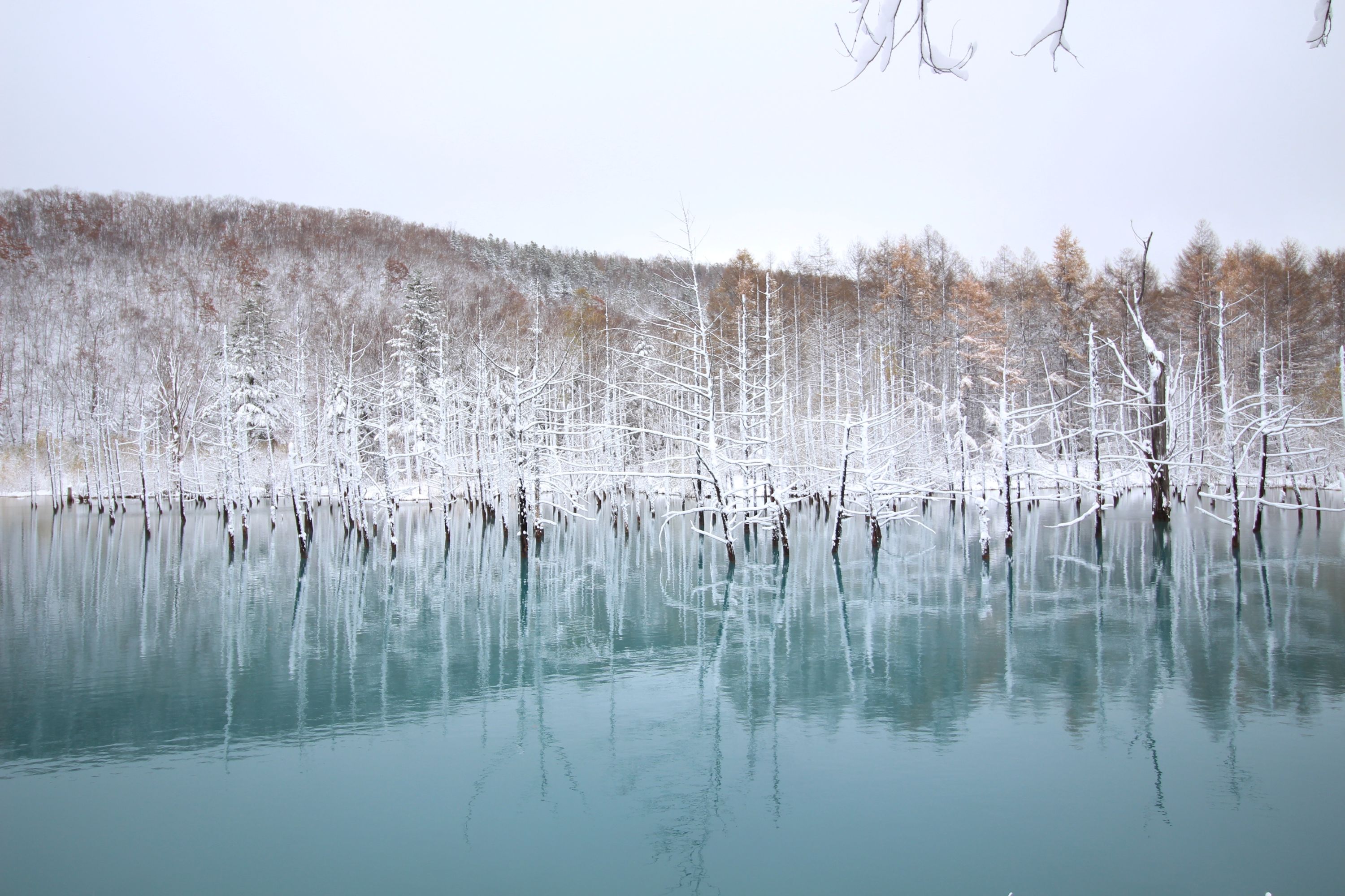 - [Attraction/experience] 15:55, 25 min(s), Shirogane Blue Pond, The surreal sight of the submerged, dead larch and birch trees standing silently in the brilliantly colored water creates an unforgettable, fairy-tale atmosphere.