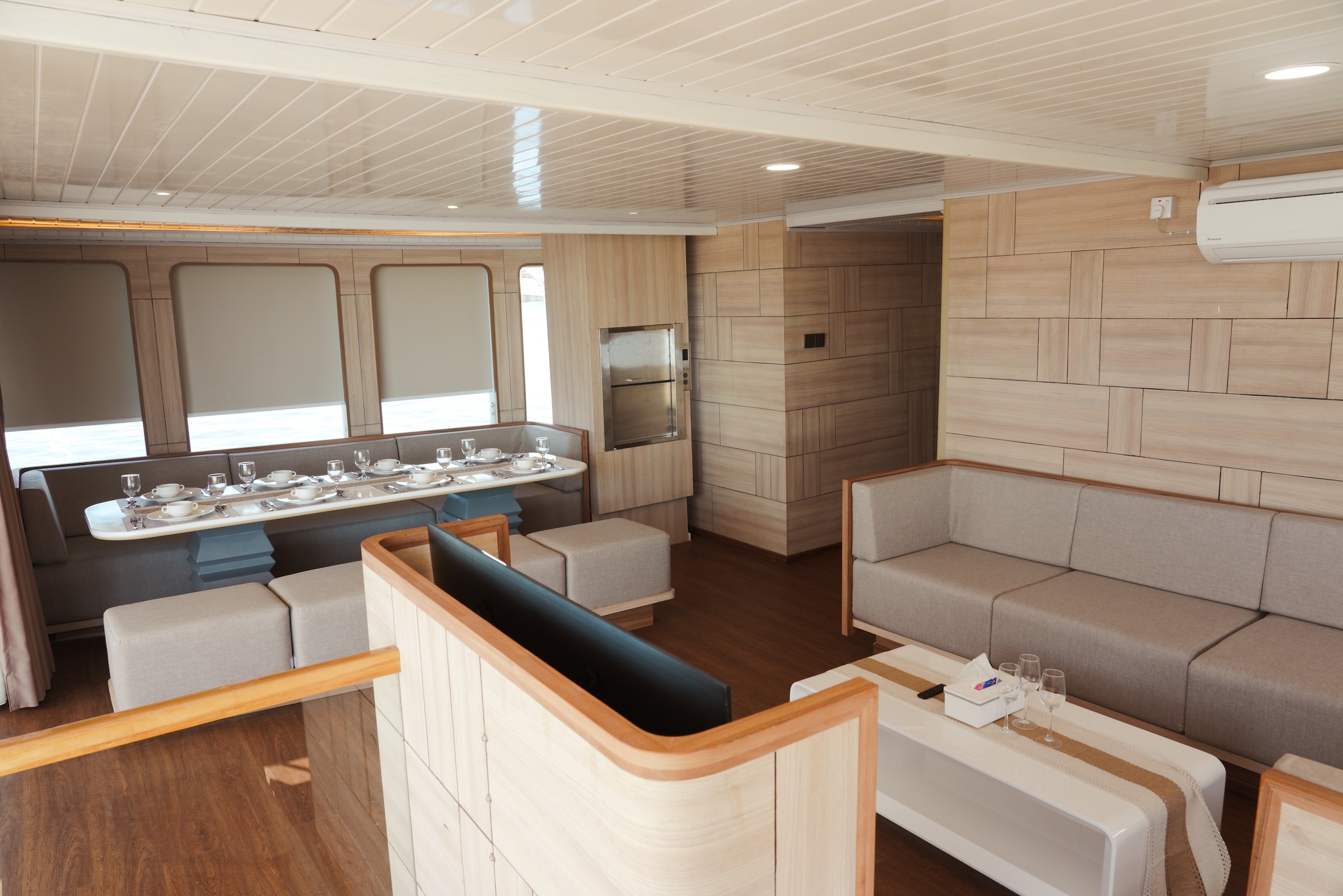 - All boat facilities (dining area, sundeck, stand up paddle, bean bag, karaoke facility, and WiFi)