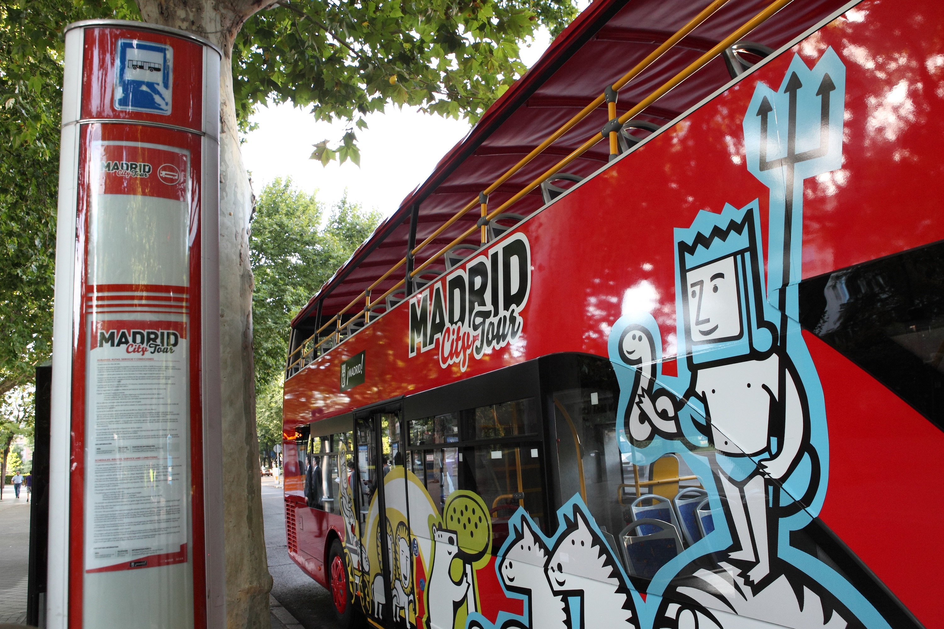 - The guided walking tour of Madrid is offered in either English or Spanish. You can check information or reserve your spot using the QR codes available onboard the bus