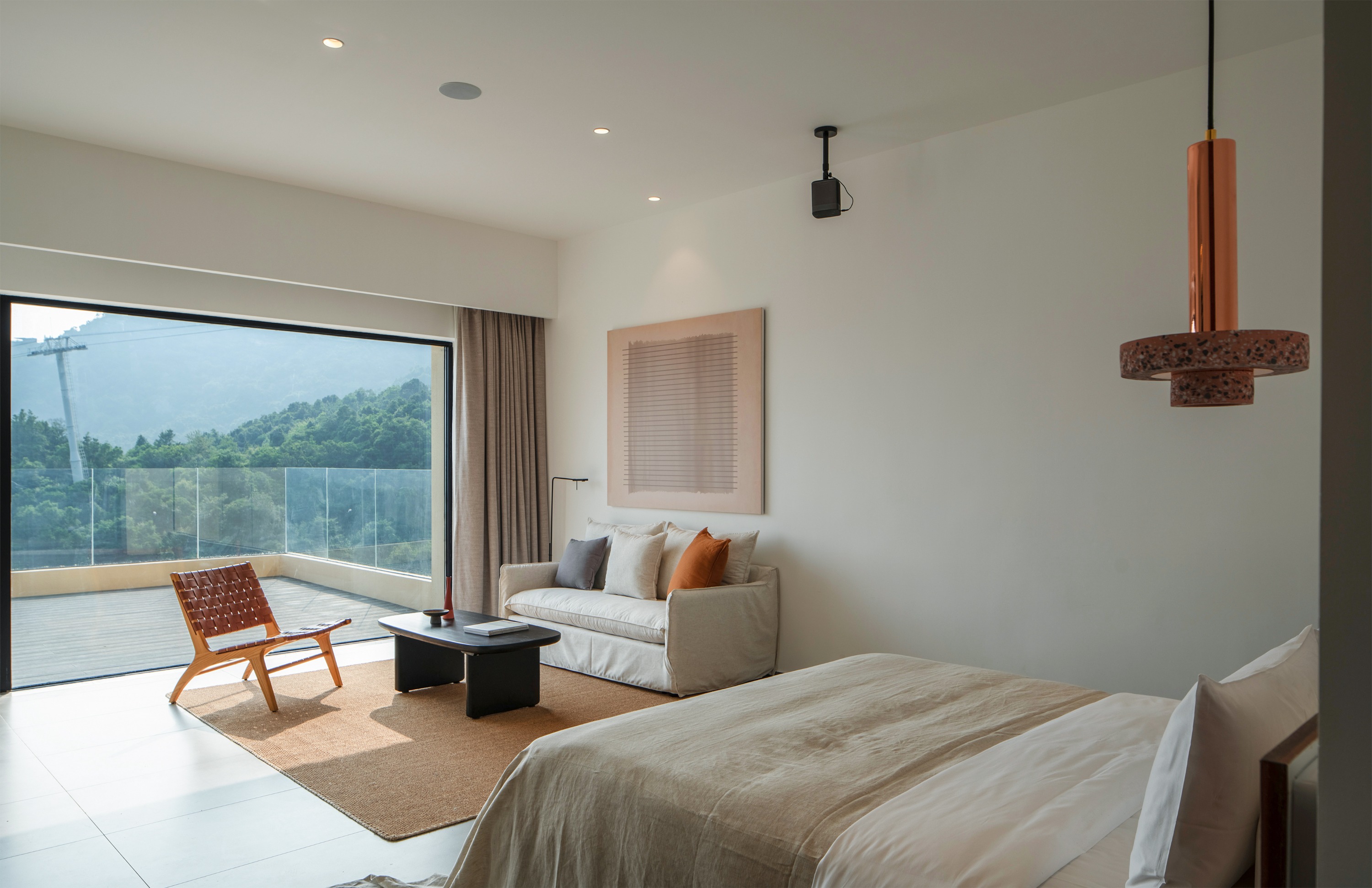- Air conditioner, balcony, window, private bathroom, bathtub, hair dryer, clothes rack, hot water, electric kettle, heating, smart toilet, toiletries, projection equipment, smart door lock, viewing terrace, free parking, luggage storage, sofa, butler, Quilt, wine glass, tea set