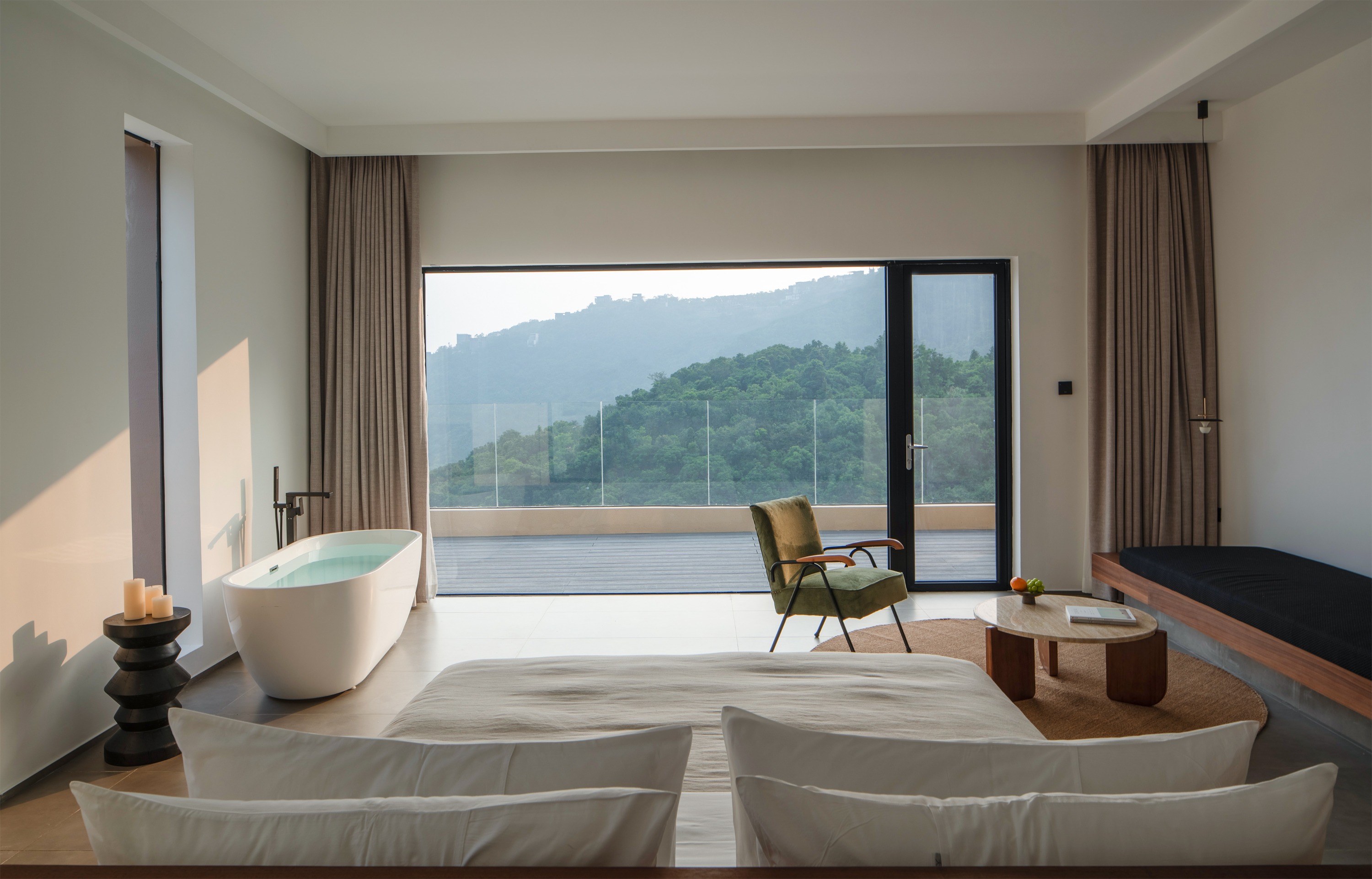 - Air conditioner, window, private bathroom, bathtub, hair dryer, clothes rack, hot water, electric kettle, heating, smart toilet, toiletries, projection equipment, smart door lock, viewing terrace, free parking, luggage storage, sofa, butler, quilt, wine glass, tea set