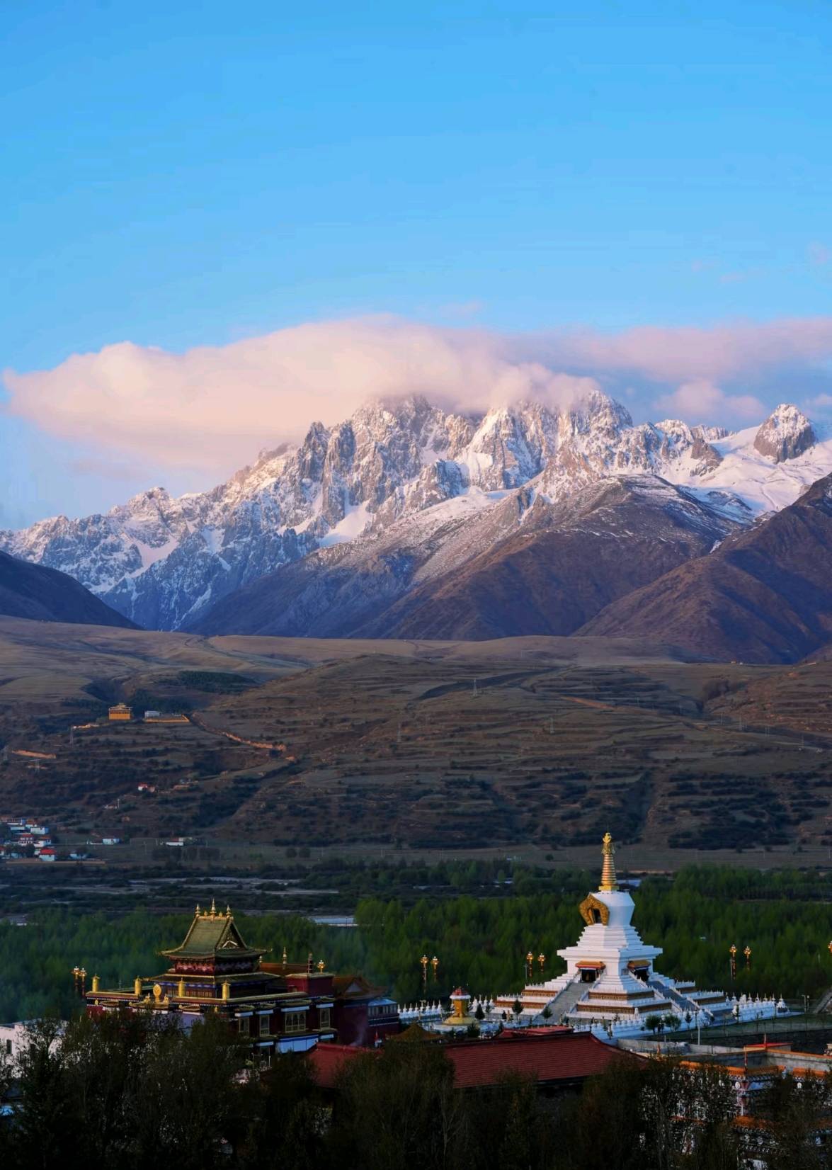 - [Attraction/experience] 10:00, 30 min(s), Self-guided, Hangda Camp, Along the way, snow-capped peaks gradually come into view, with meadows, rivers, and Tibetan-style villages appearing alternately. The Hangda campsite is an excellent stopping point, offering a close-up experience of the imposing presence of the Genyen mountain range.