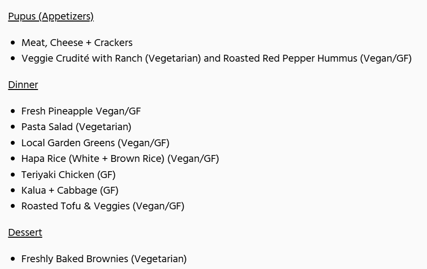 - Please refer to here for the dinner menu
