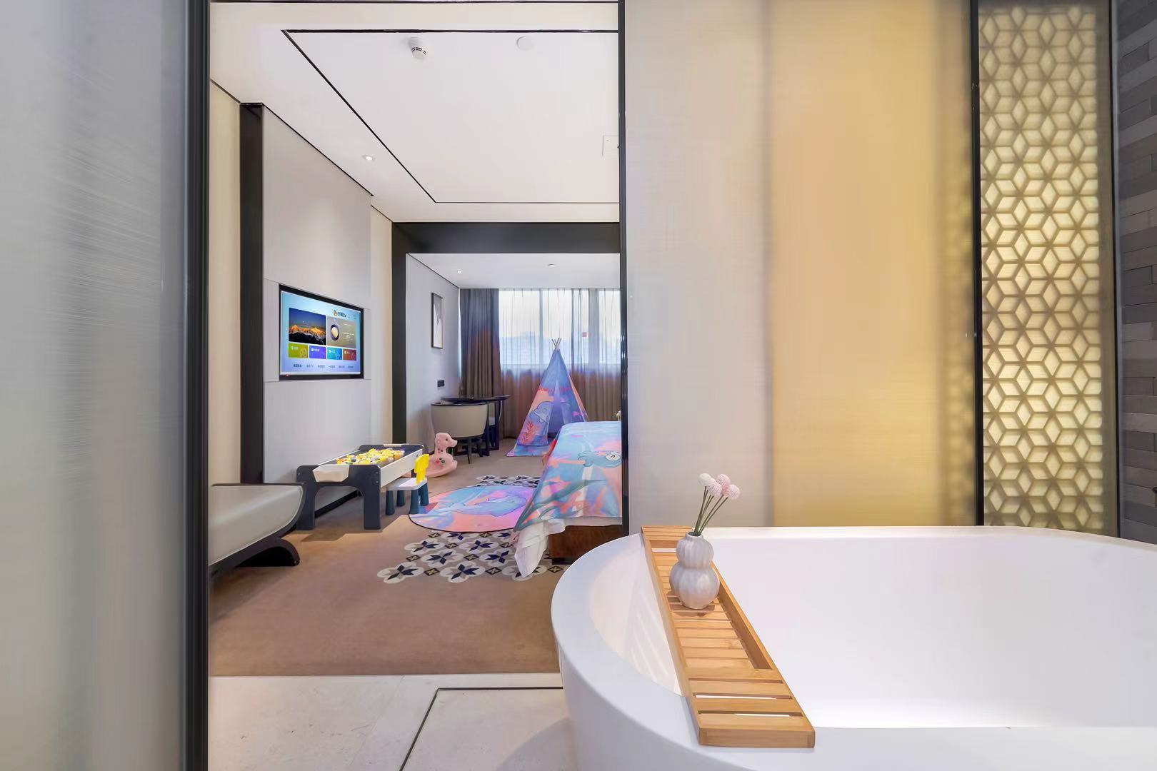 - Family Suite (King Bed): 1 King Bed (1.8 meters) | 35–45 square meters | Floors 9-11 | Window | Non-smoking | Bathtub