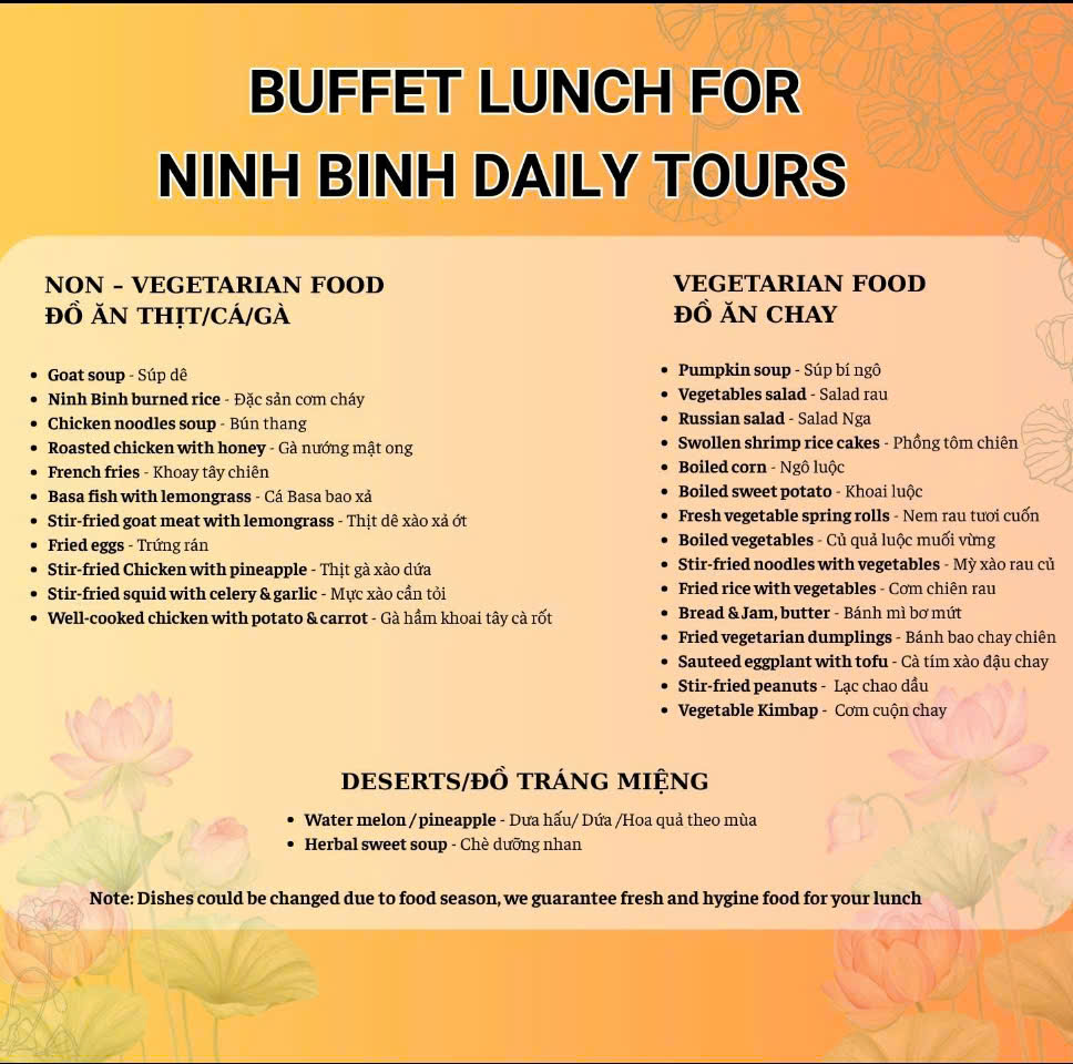 - Extra charge of 1,000,000 VND per person when traveling on December 24, 2025; December 31, 2025; January 1, 2026; February 15–21, 2026; April 30, 2026; May 1, 2026; September 2, 2026; December 24, 2026; December 31, 2026. Pay directly onsite