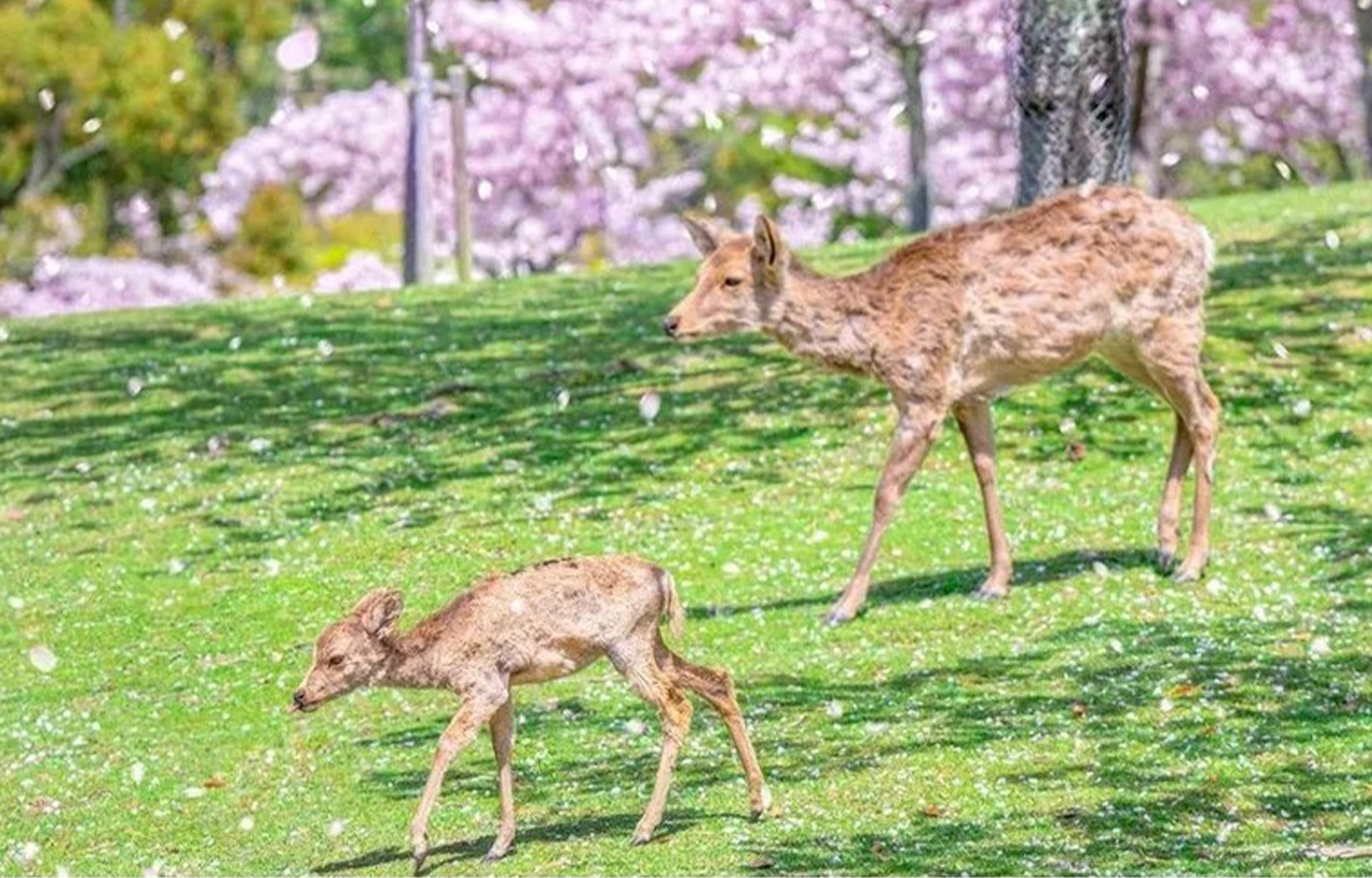 - [Attraction/experience] 08:30, 3 hour(s), Self-guided, Nara Park, Nara Park is the most representative urban park in Nara, famous for its approximately 1,700 cherry trees in spring and freely roaming deer. The park includes World Heritage sites such as Todai-ji Temple and Kasuga Taisha Shrine, and Mount Wakakusa offers a panoramic view of Nara. During the cherry blossom season, the sight of deer foraging under the cherry trees creates a unique springtime scene.
