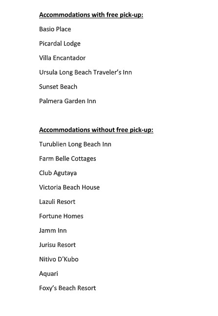 Hotel pick up is limited to Poblacion San Vicente area only