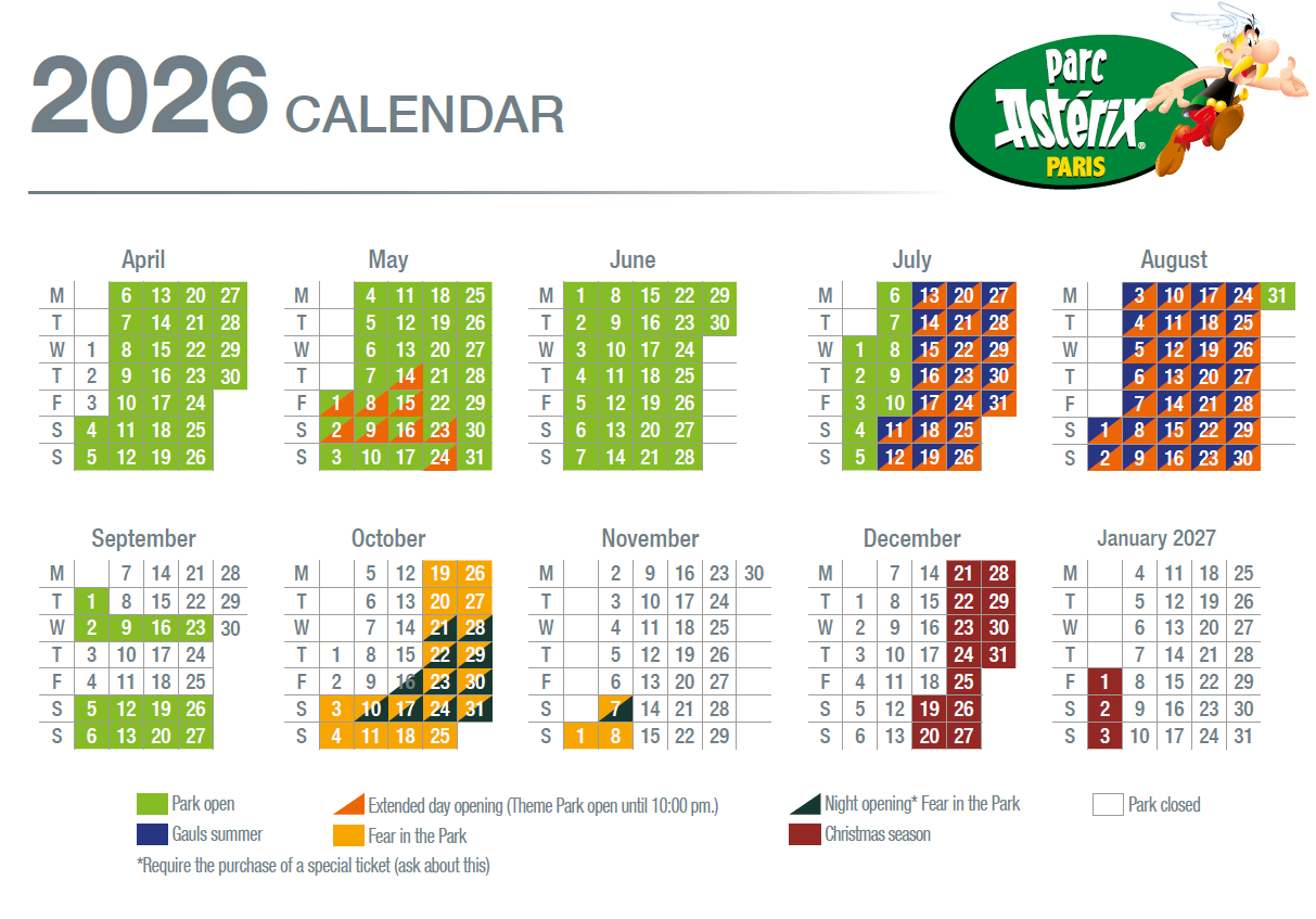- By car: 35km north of Paris (Porte de la Chapelle) on the A1 motorway towards Lille, take the direct exit for Parc Astérix between exits 7 and 8. Car park price: € 20, to be paid on site