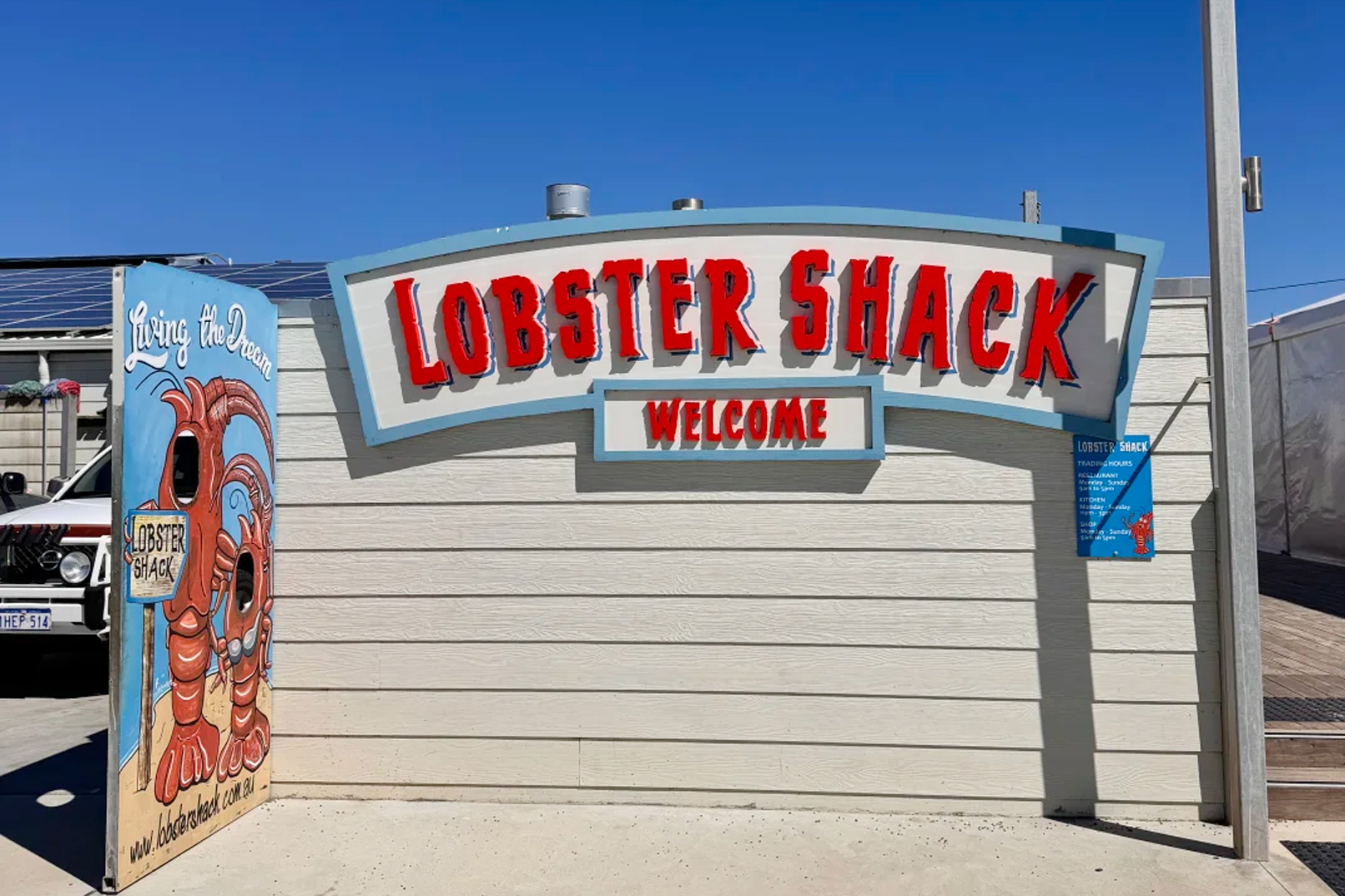 - [Dining] 13:00, Lunch, Lobster Shack Cervantes WA, Arrive at the lobster factory and enjoy a delicious lobster lunch (at your own expense).
