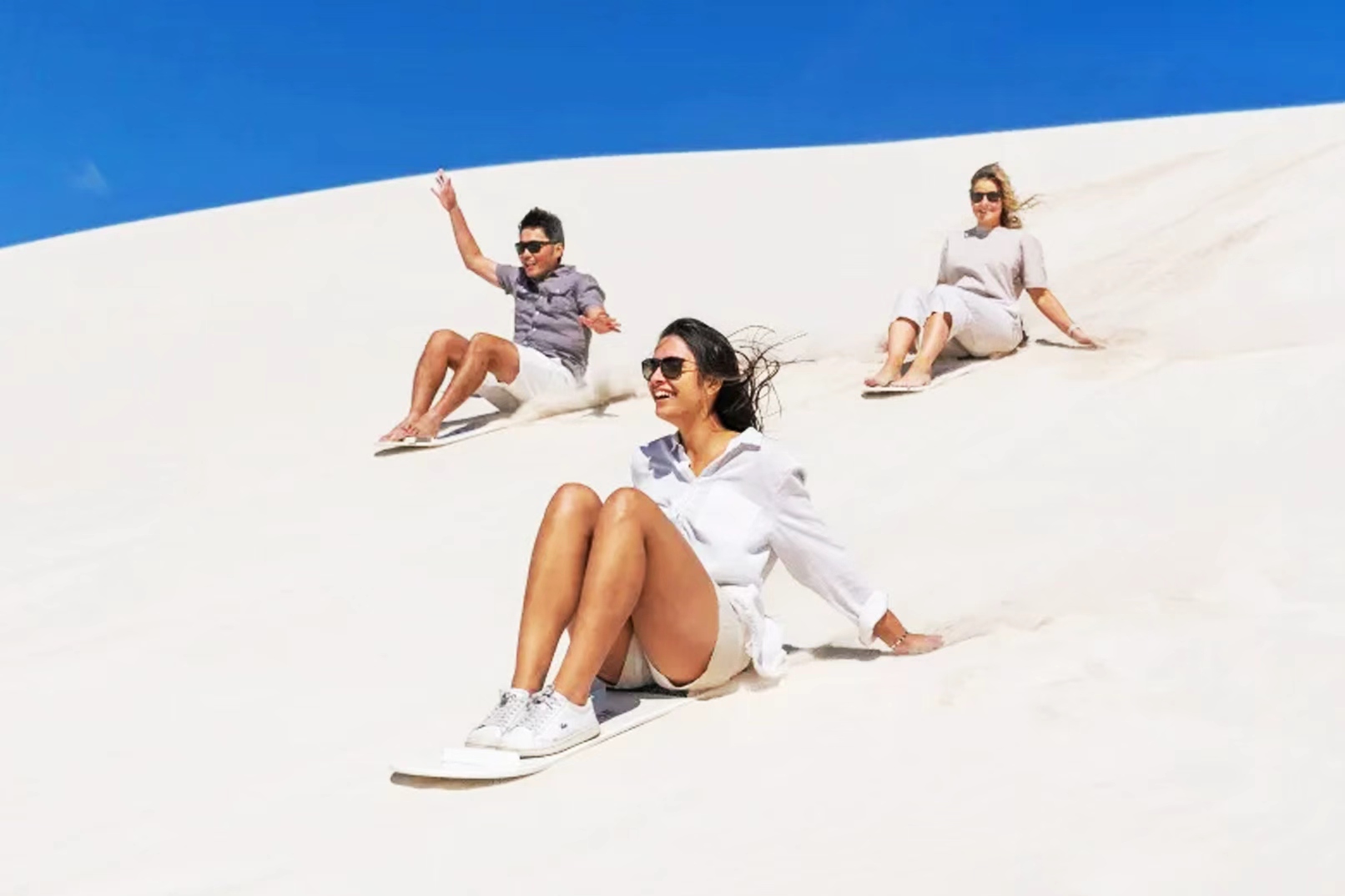 - [Attraction/experience] Guided tour, Lancelin Sand Dunes, In the afternoon, we arrived at the Lancelin Sand Dunes, a pure white desert with dunes reaching 3-4 meters in height at the highest point. A special arrangement has been made to ride a professional four-wheel drive vehicle and enjoy the thrill of diving down from the heights (complimentary activity).