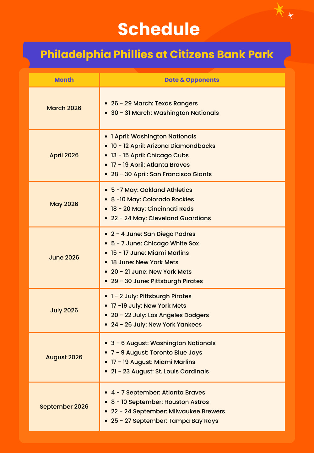 - Admission to: Philadelphia Phillies Baseball Game at Citizens Bank Park