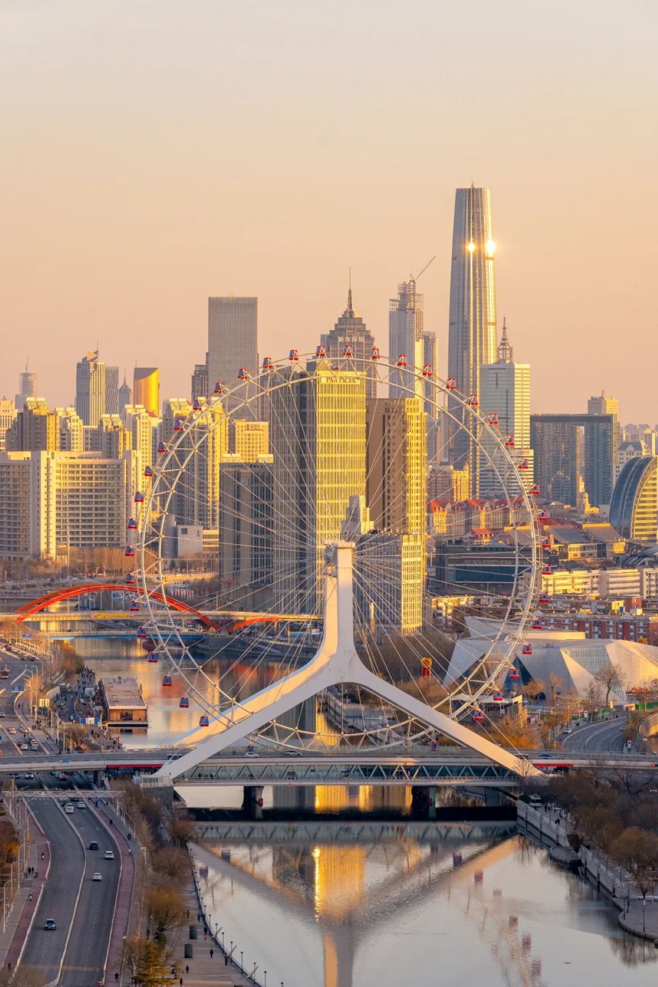 - [Attraction/experience] Italian Style Street, Pass by the Sancha River Estuary, the birthplace of Tianjin. This was once the site of Dayu's successful flood control and the outlet of the ancient Yellow River. The Haihe River is also known as the "Yu Gong Yellow River". You can see from a distance the Tianjin landmark adjacent to the Dabei Temple - the "Tianjin Eye", the world's largest bridge Ferris wheel with a diameter of 110 meters.