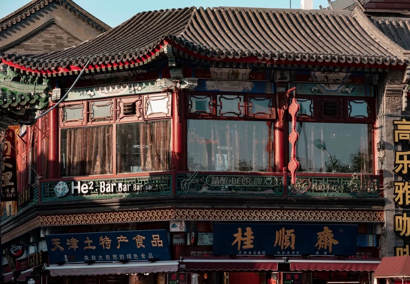 - [Attraction/experience] Self-guided, Taifengxiang Food Street, Food Street is located in the northeast of Nankai District, on the west bank of the Haihe River, and is a 5A commercial pedestrian street. As one of the ten scenic spots in Tianjin, Tianjin Ancient Culture Street has always adhered to the business characteristics of "Chinese flavor, Tianjin flavor, cultural flavor, and ancient flavor". There are nearly a hundred shops in the Ancient Culture Street.