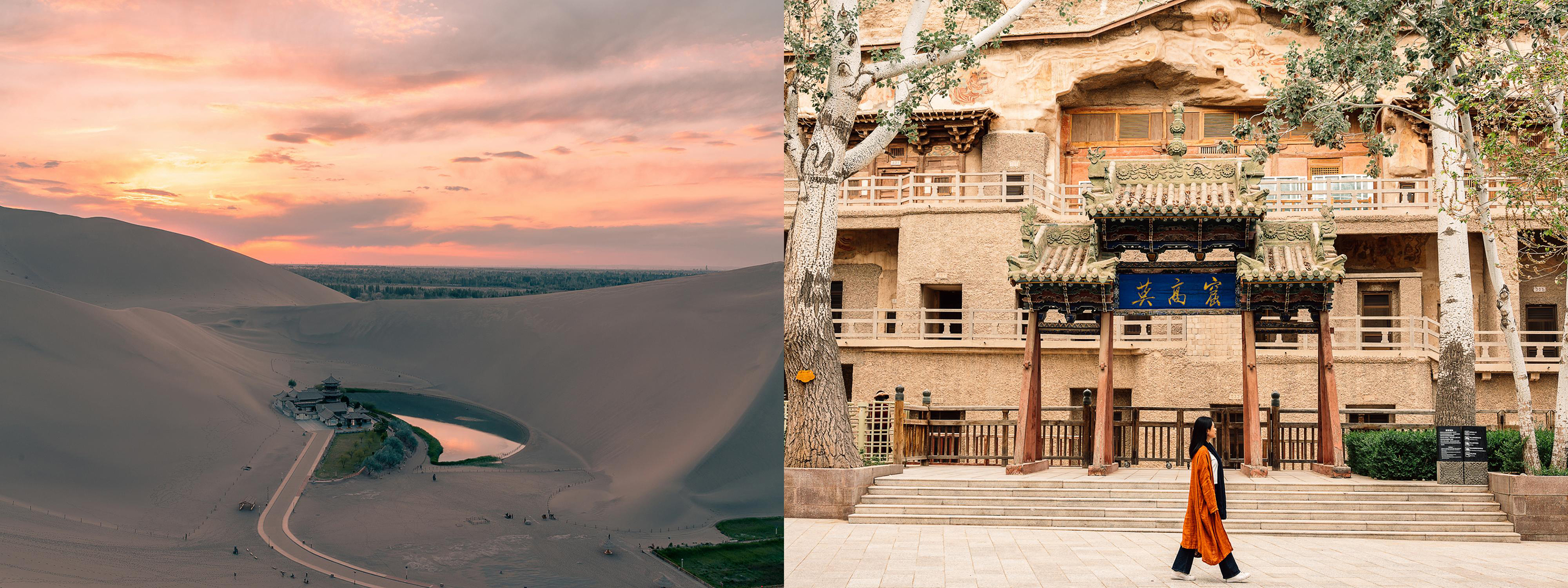 - [Attraction/experience] Mogao Caves, ★【Mogao Grottoes - Return Trip】 🔸Experience: Solemn Buddha statues and graceful flying Apsaras await your arrival here. Thank you for choosing our service. 🔸Vehicle: Private car + driver and guide + online butler service.
