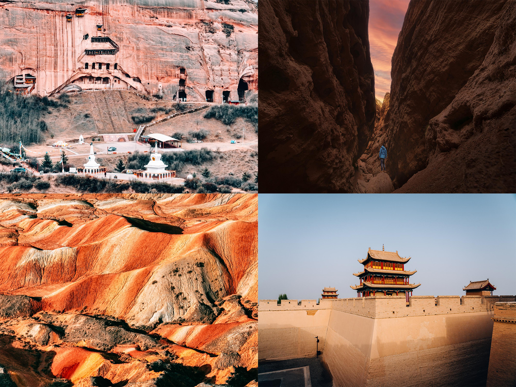 - III. Tickets: Tianti Mountain Grottoes + Lei Tai Han Tomb + Mati Temple Grottoes + Pingshan Lake Grand Canyon + Rainbow Mountains of Zhangye Danxia + Jiayuguan Fortress + Singing Sand Dunes + Makeup Experience (Complimentary, non-refundable and non-modifiable) + Mogao Caves