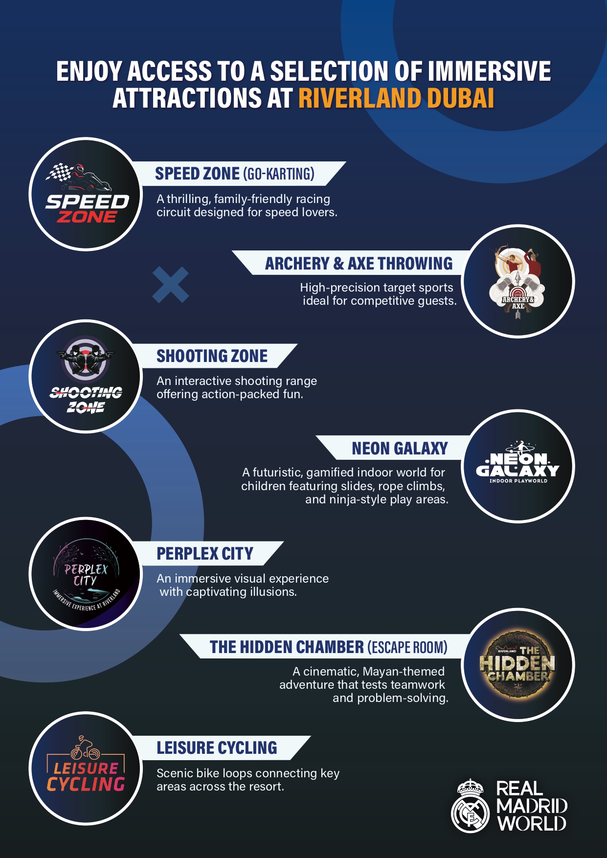 - One day ticket to any of the two parks: Real Madrid World, MOTIONGATE™ Dubai, LEGOLAND® Dubai, or LEGOLAND® Water Park