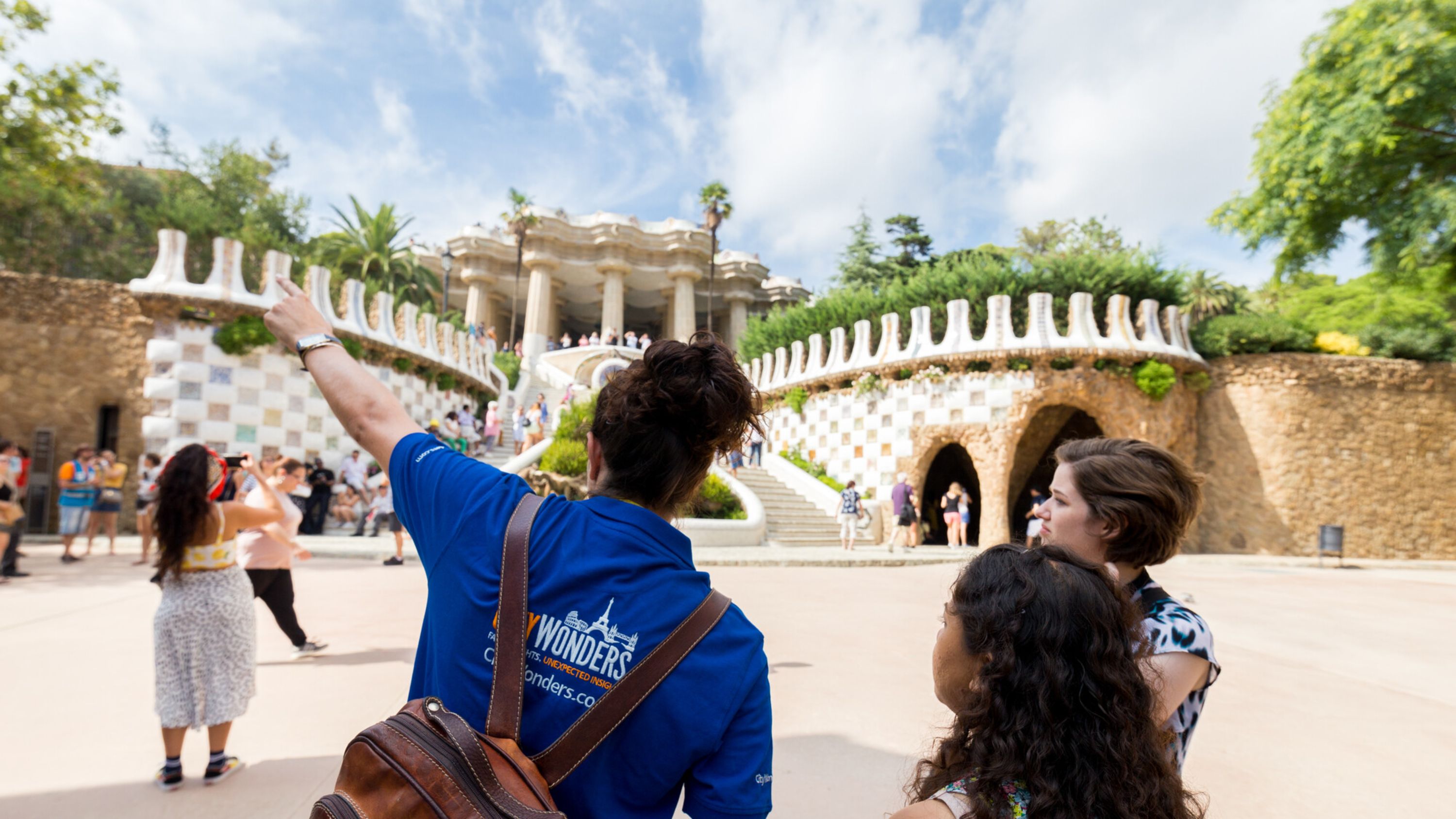 - [Attraction/experience] Guided tour, Park Guell, After the Sagrada Familia tour, head to the Park Güell entrance (Carretera del Carmel 23) to meet your guide for the Park Güell tour. A guide on the esplanade will hold a City Wonders flag