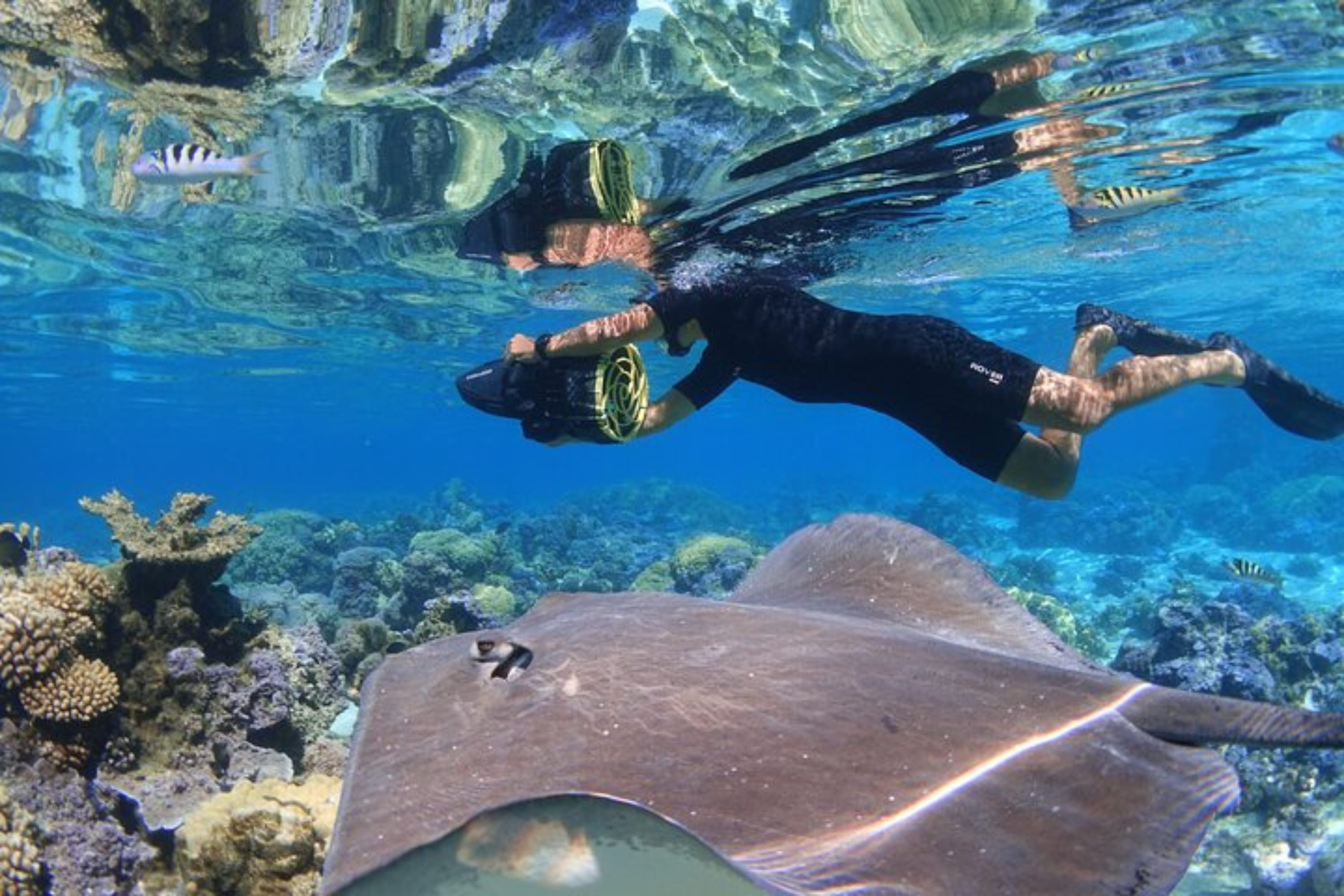 - [Attraction/experience] Manta Fish Snorkeling, Guests will receive a safety briefing, snorkeling introduction, and training on how to use the underwater sea scooter before entering the water.