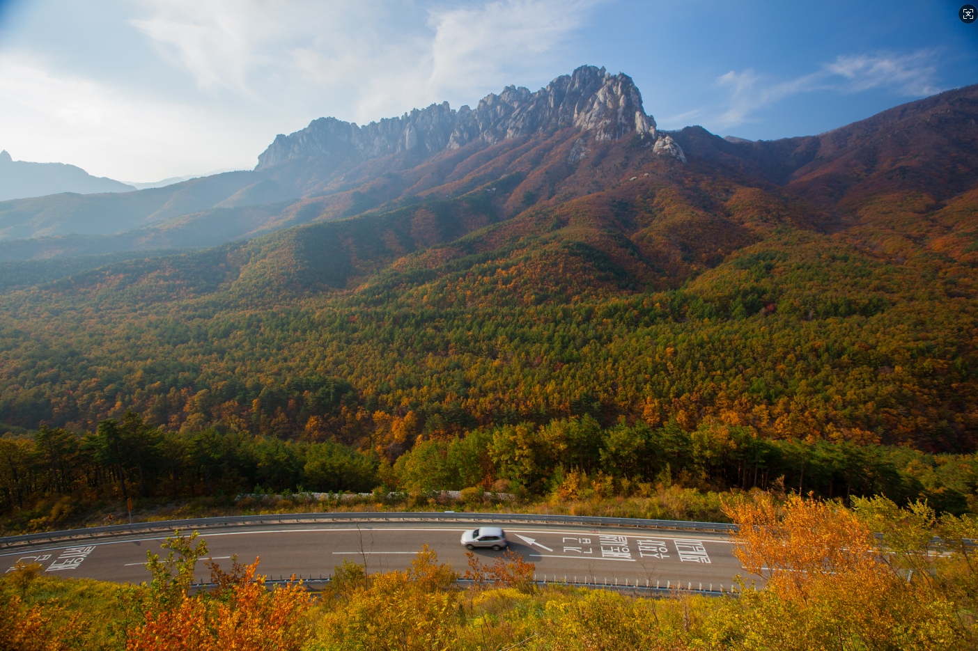 - [Attraction/experience] 10:00, Seoraksan National Park Osaek District, At Seoraksan National Park, you can take a cable car and visit Sinheungsa Temple, as well as enjoy photo stops along the scenic mountain valleys.