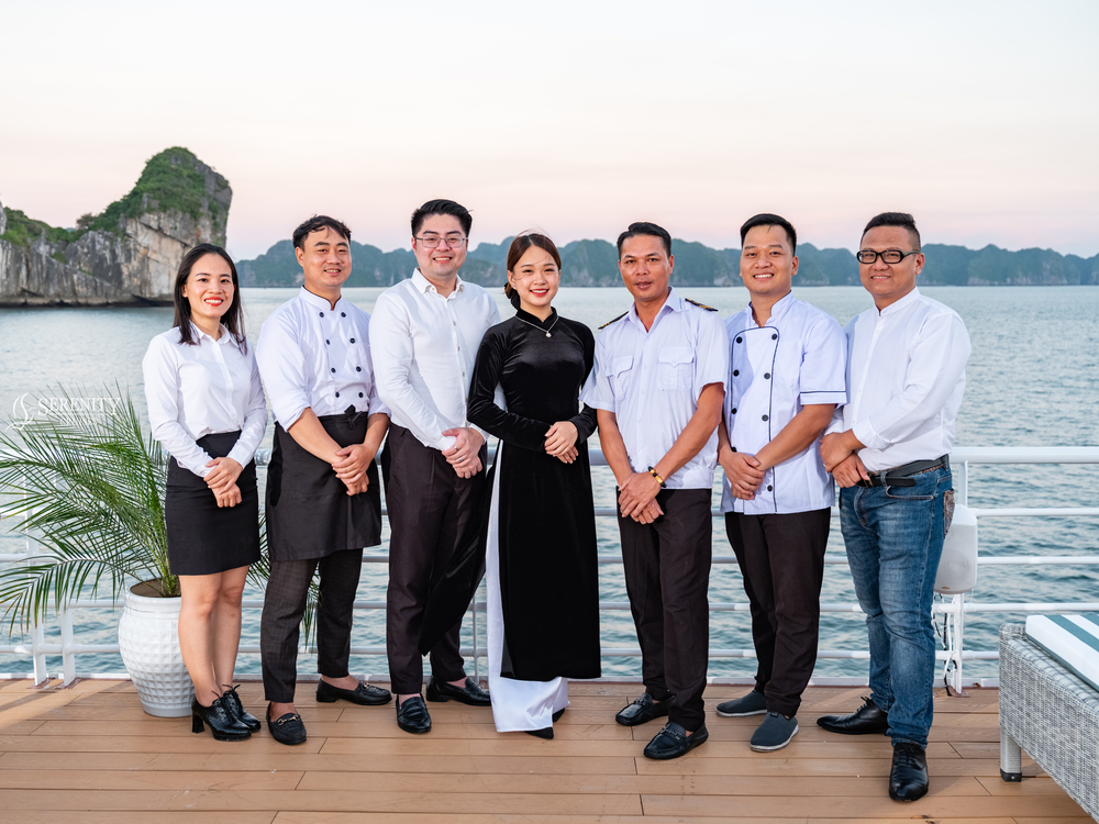 - [Attraction/experience] 16:45, Guided tour, bến Bèo, Return to Beo Dock, say ”Goodbye” Lan Ha Bay & Serenity Cruise team, and Get on the bus back to Ha Noi