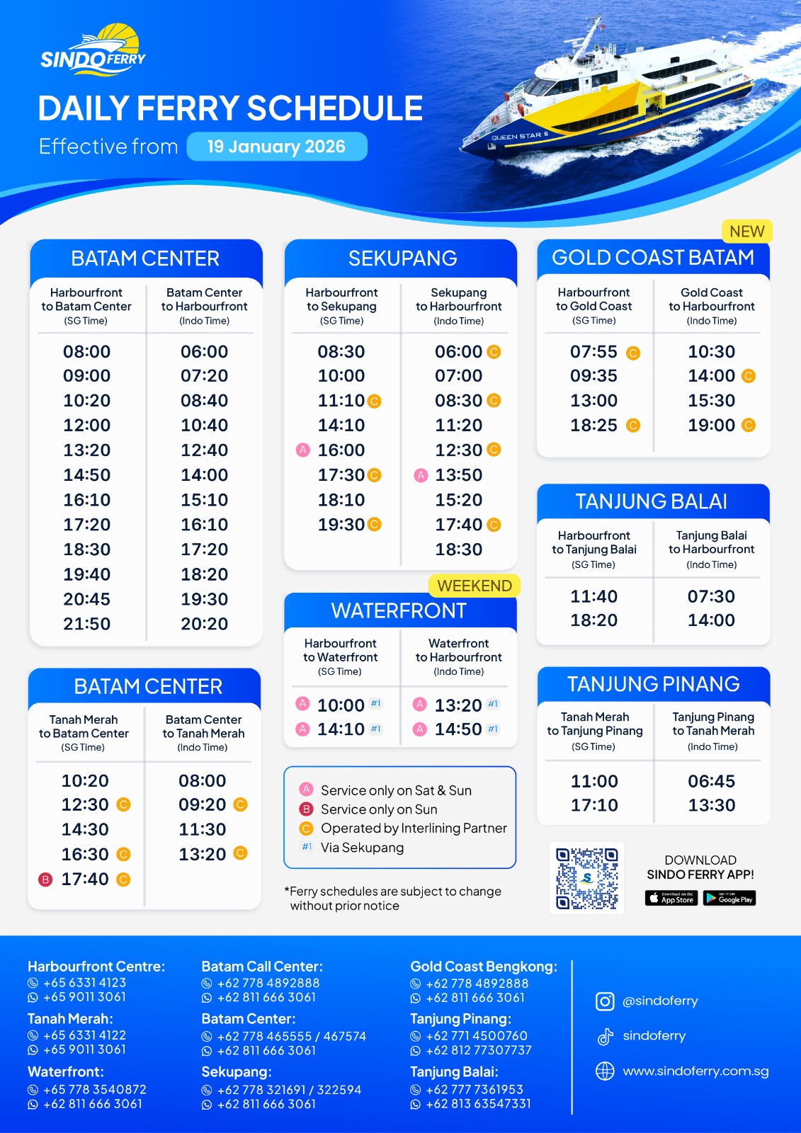 Singapore (Tanah Merah Ferry Terminal) · Batam Center · One-way