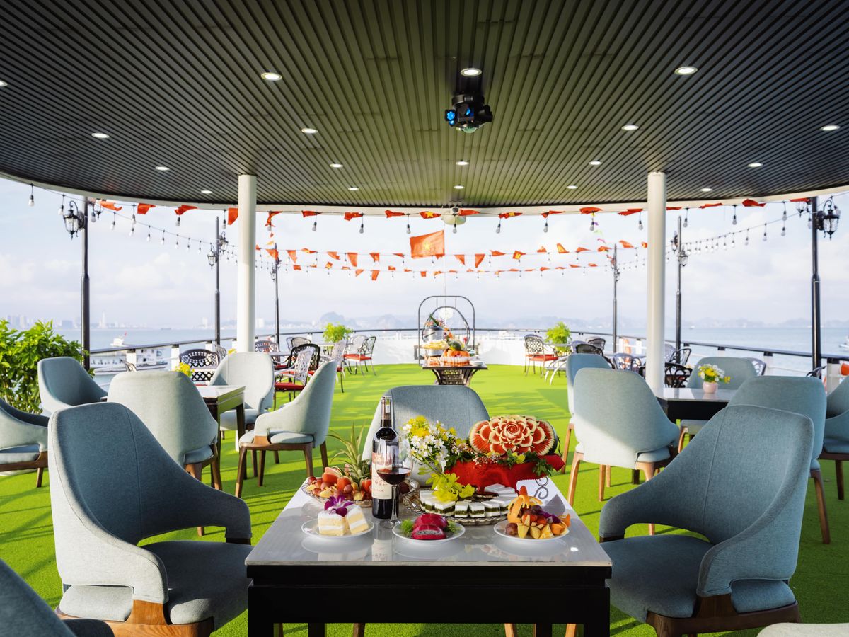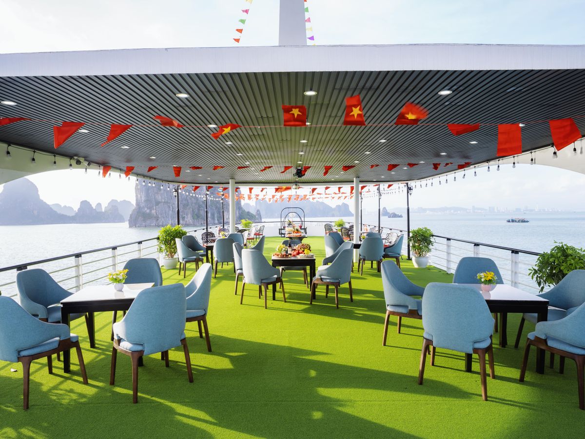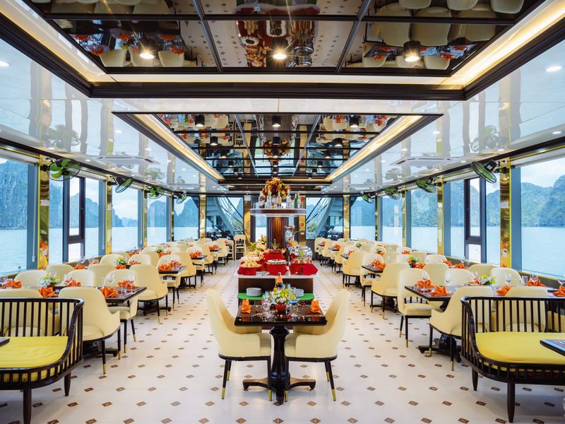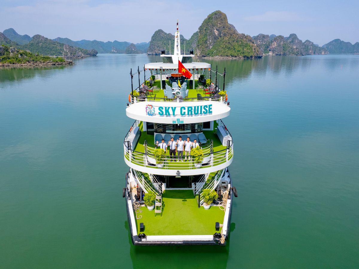 - [Attraction/experience] 11:30, Ha Long Bay, Arrive at Tuan Chau Marina and step aboard the elegant Sky Cruise Halong. Sip a welcome drink as the crew provides a safety briefing, and begin your journey through Halong Bay’s emerald waters.