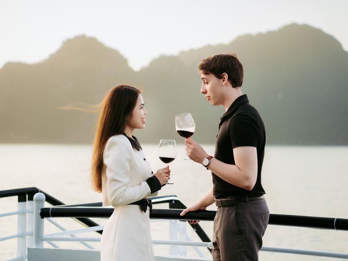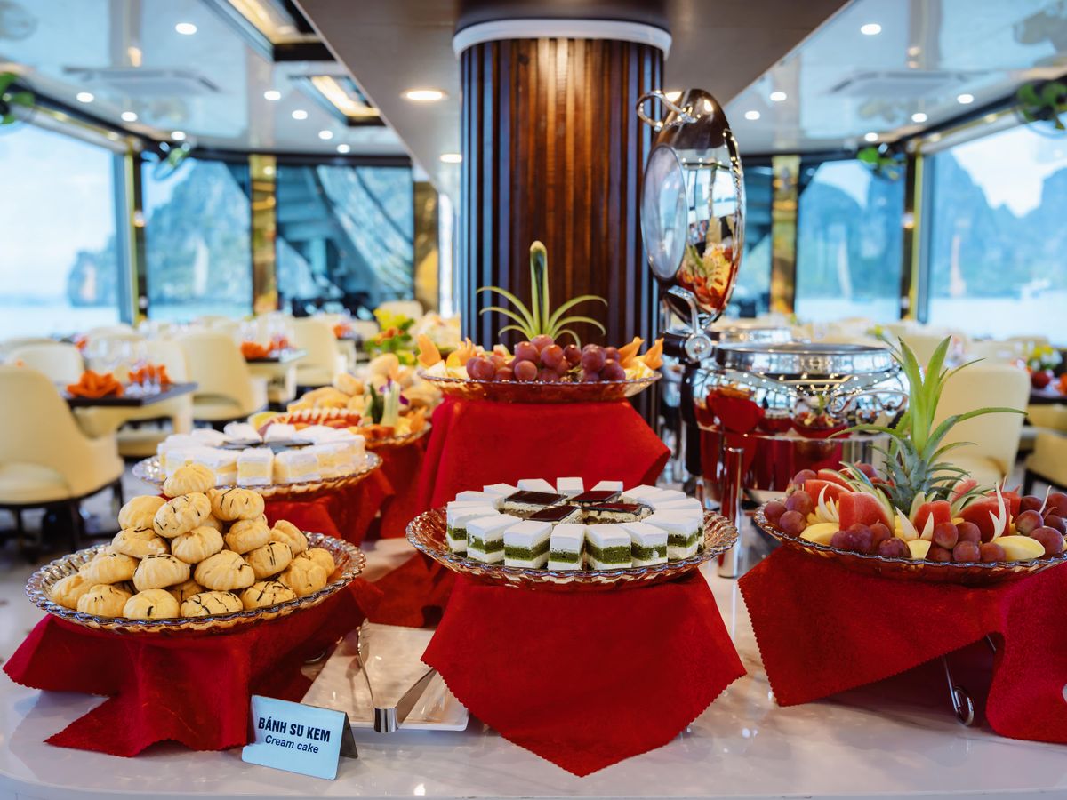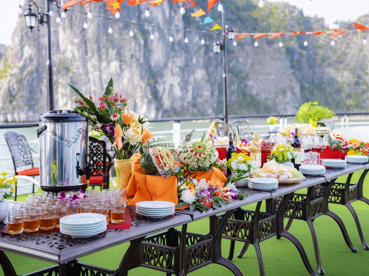 - [Attraction/experience] 11:30, Ha Long Bay, Arrive at Tuan Chau Marina and step aboard the elegant Sky Cruise Halong. Sip a welcome drink as the crew provides a safety briefing, and begin your journey through Halong Bay’s emerald waters.