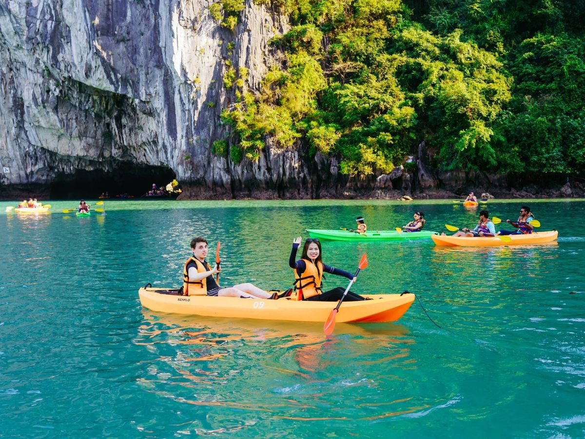 - [Attraction/experience] 13:30, 4 hour(s), Guided tour, Sung Sot Cave, Ti Top Island, Luon Cave, Discover Sung Sot Cave, Titop Island, Kayaking at Luon Cave then Sunset Party and Return