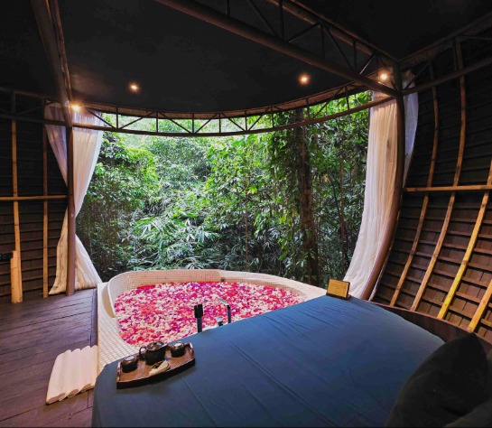 - You and your partner will then be able to wrap things up with a private botanical jacuzzi in ourMekar signature couple cocoon suit. The appropriate tasting menu and a glass of Sparkling wine or white wine will be served as we allow you to indulge & retire to the uninterrupted views of the jungle and the sound of nature