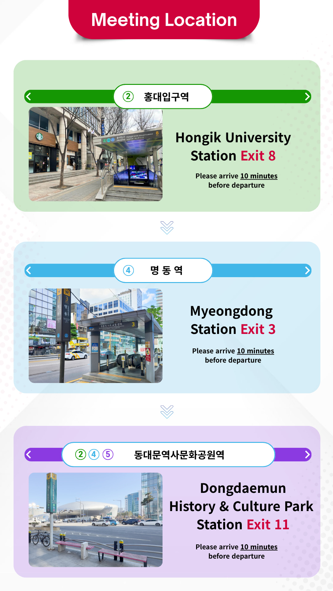 • [Return] 19:10, at Hongik University Station, Arrival times may vary somewhat depending on the traffic conditions on the day of the tour.