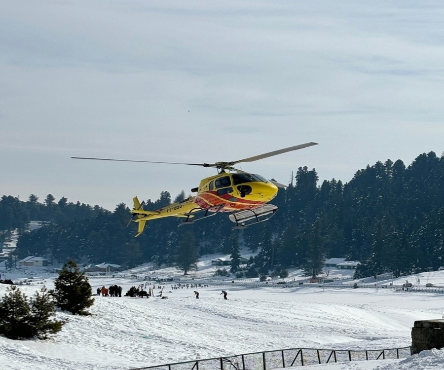 - [Attraction/experience] Helicopter Joyride Experience, -Enjoy the 8-12 minute Short scenic helicopter flight over Gulmarg. -Enjoy 360° aerial views of snow-capped peaks, alpine meadows, and deep valleys -Take off and land at the same Gulmarg helipad