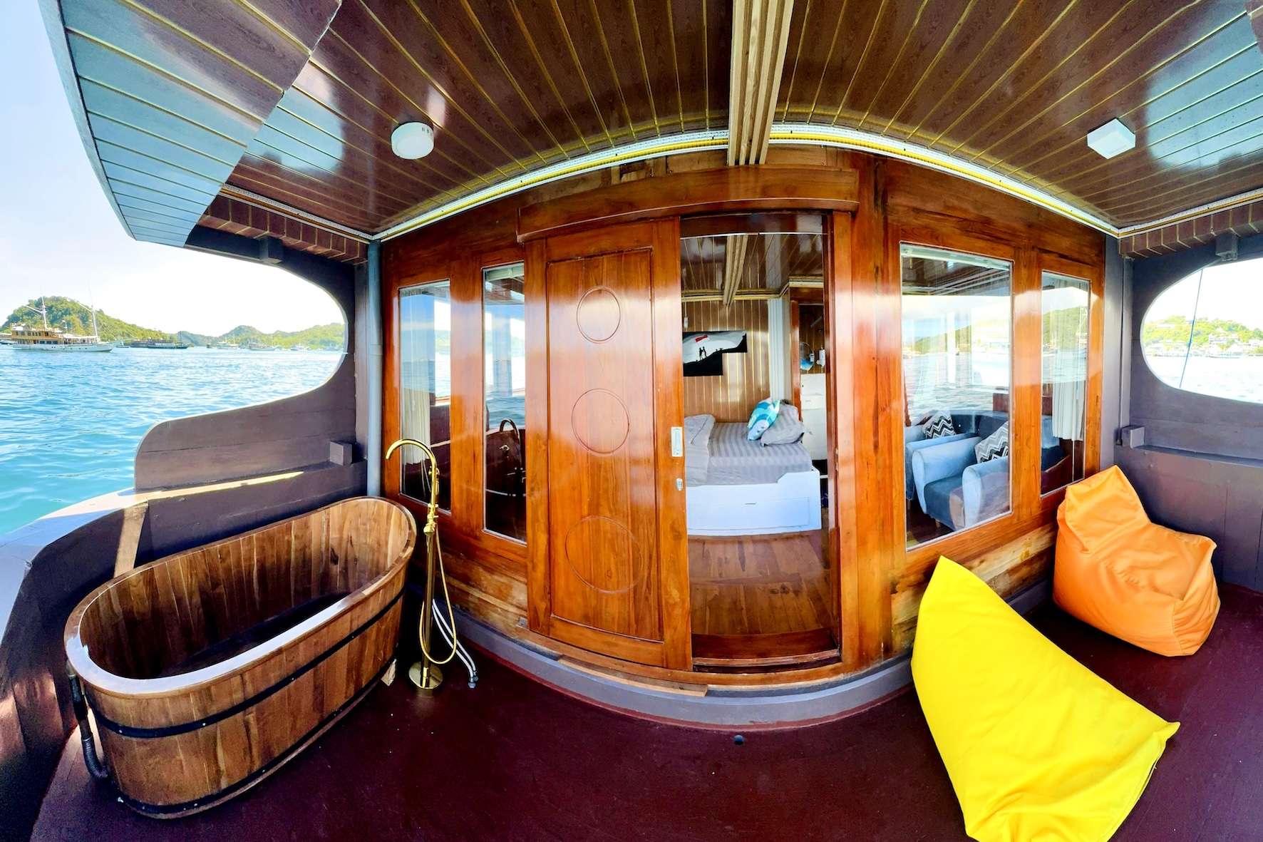 - [Accommodation] Queen-size bed (for 2 people), Private bathroom, person(s) per room; Jawa Cabin facilities: Air conditioner (AC), Double size + single bed, Sea view window, Electric plugs, Towel, Linen, Private bathroom, 2-4 people in one cabin, Bathtub, Private balcony
