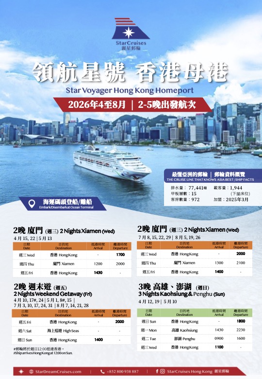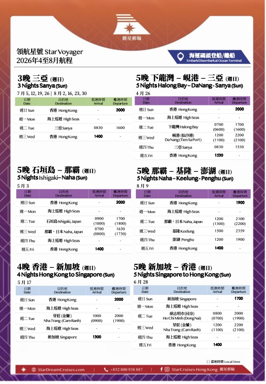 - **** Important Notice: This is a one-way cruise. Disembarkation will take place in Singapore and the ship will not return to Hong Kong**