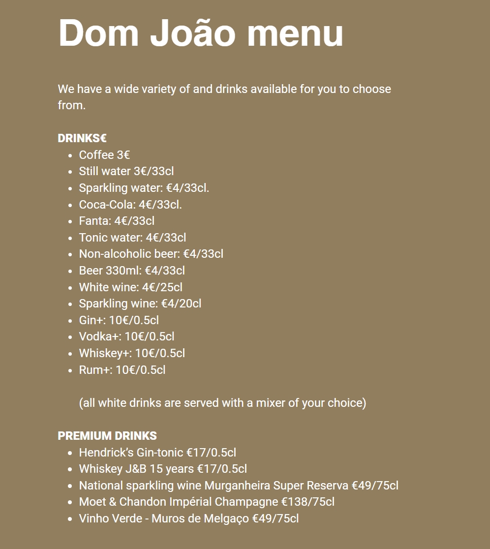 • Premium drinks are available upon request, please refer to this menu