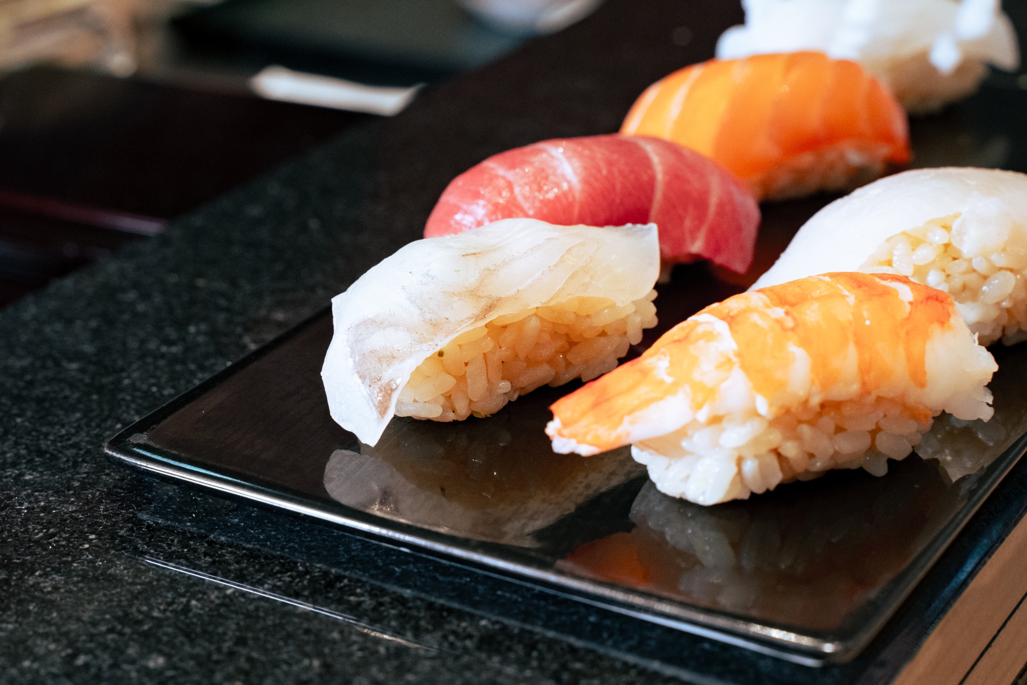 - You may choose between (1) Nigiri Experience Course – 6–8 pieces of nigiri sushi or (2)Nigiri + Maki Course – 4–6 pieces of nigiri sushi + 1 roll of maki sushi