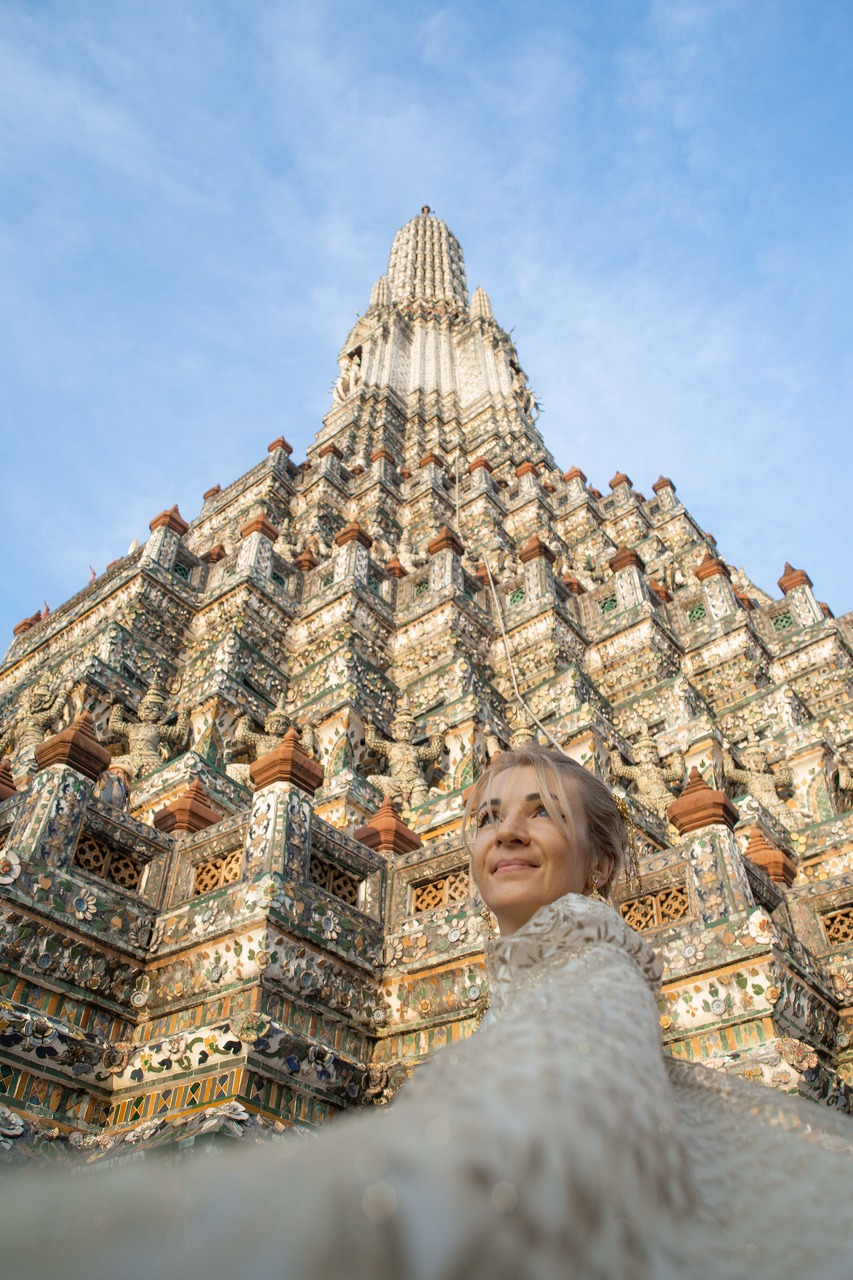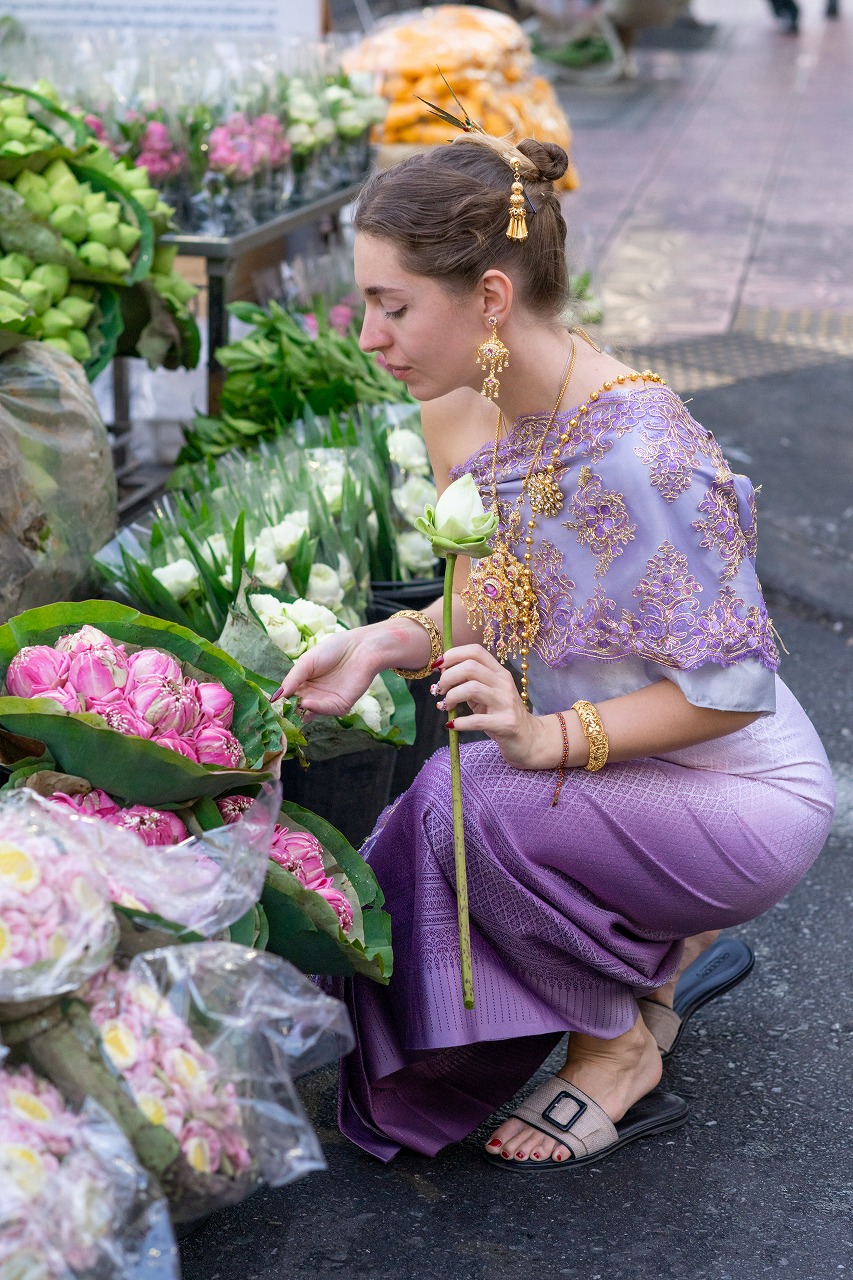 Thai Costume Pro Photo Tour by Tuk Tuk: Wat Arun & Flower Market